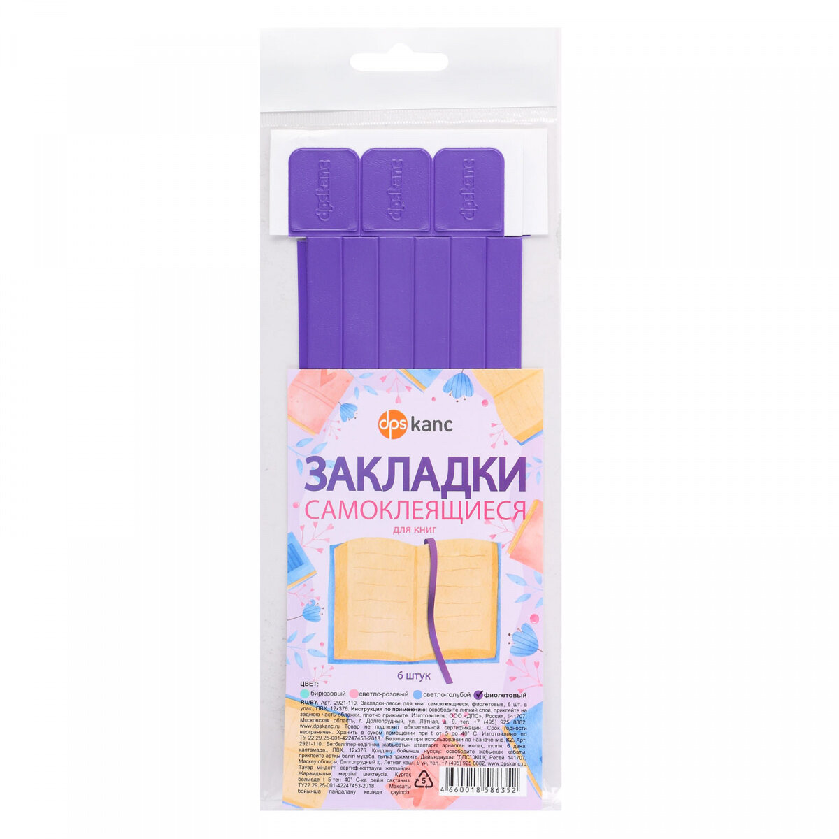 Закладки для книг "Фиолетовые", самоклеящиеся, ПВХ, 37 см, 6 штук информация: