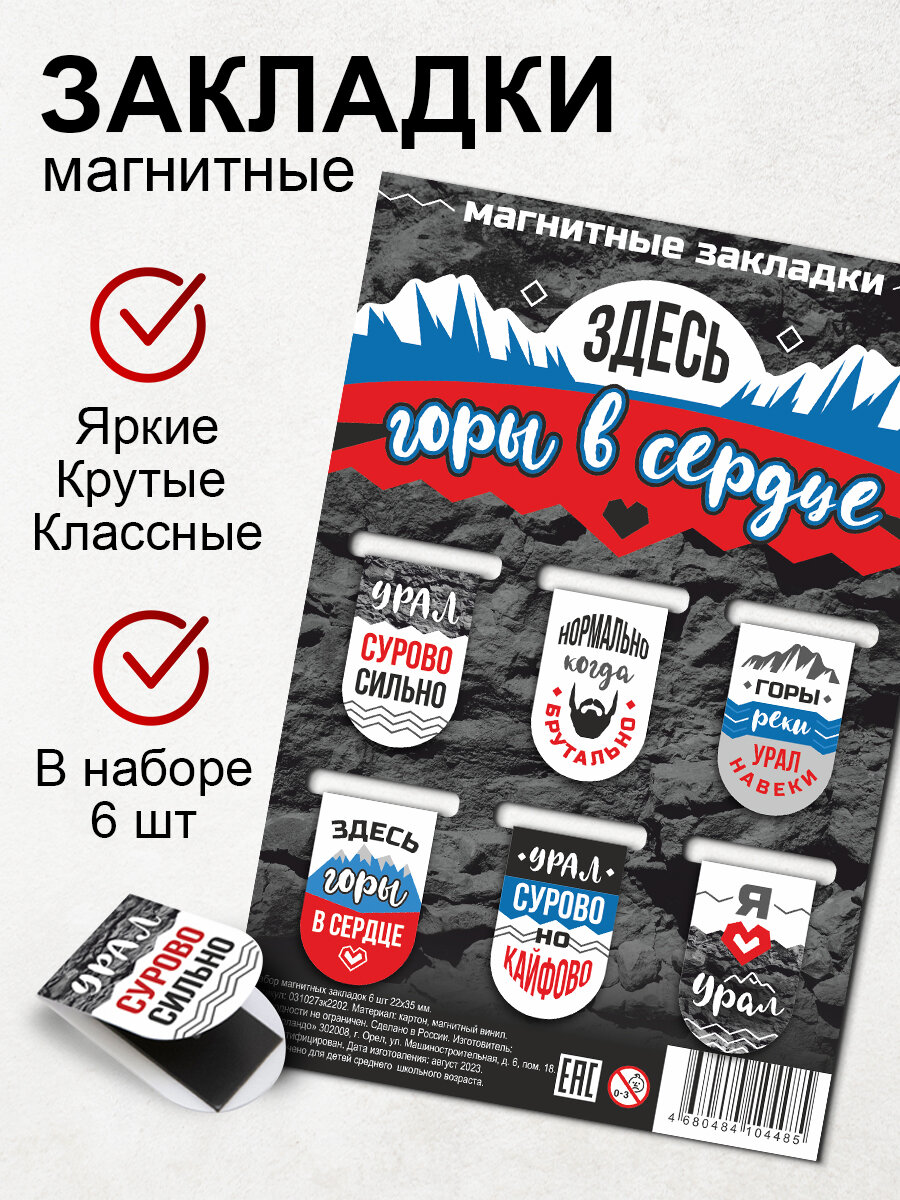 10 цен на Набор закладок для книг "Екатеринбург "Здесь горы в сердце" Магнитные закладки, стикеры 6шт 22х35 мм.