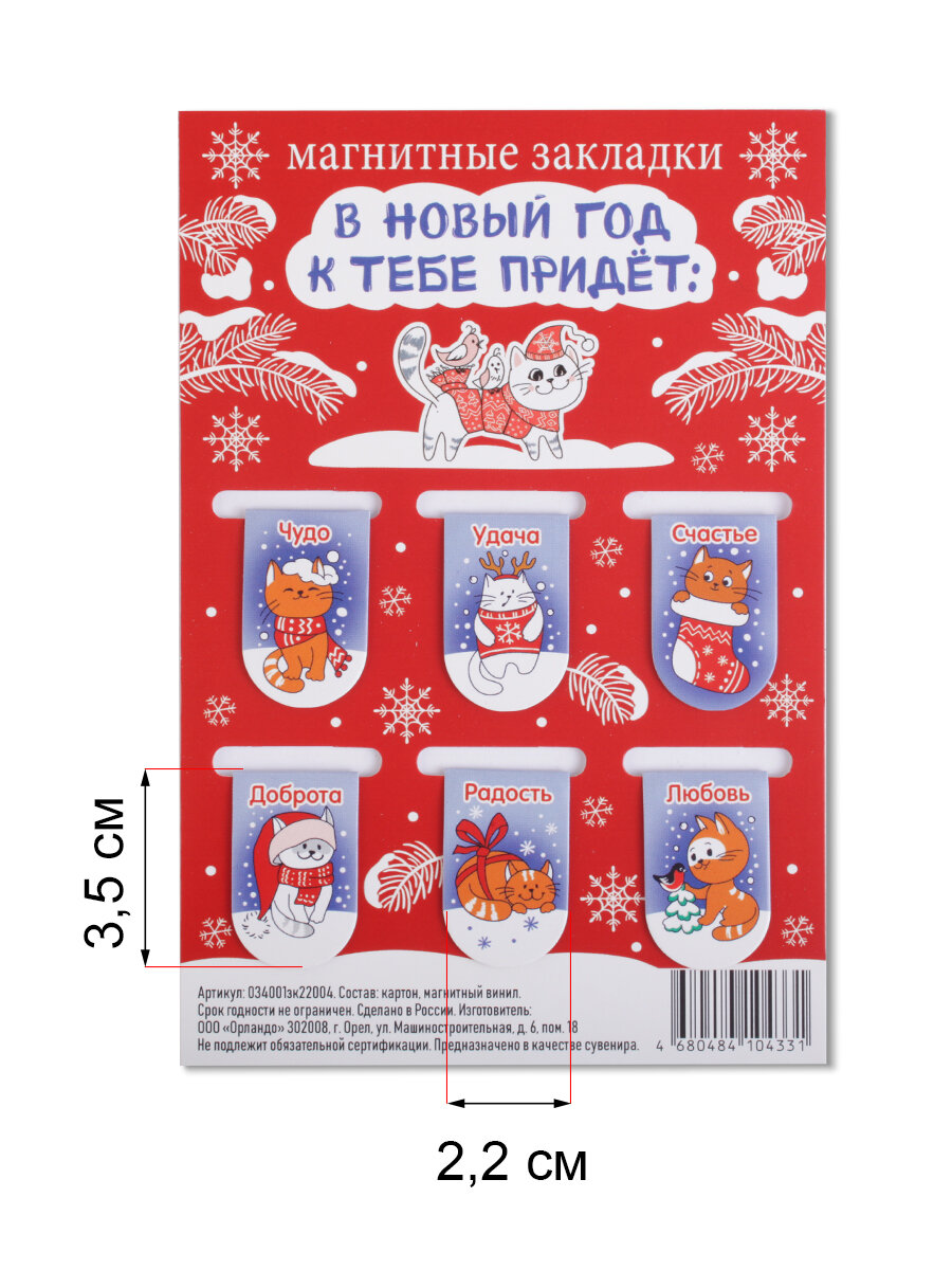 Набор магнитных закладок "Котики, как ни крути" (6шт 22х35мм), закладка для книг