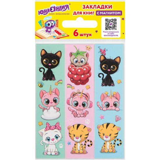 Отзывы на Закладки для книг Юнландия с магнитом MEOW CATS, набор 6 шт, блестки, 25x196 мм, , 113442