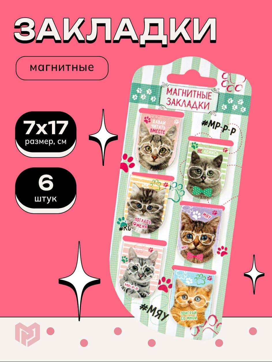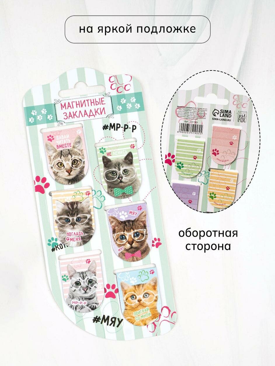 10 цен на ArtFox Магнитные закладки на подложке "Котики", 6 шт, состав: бумага, картон
