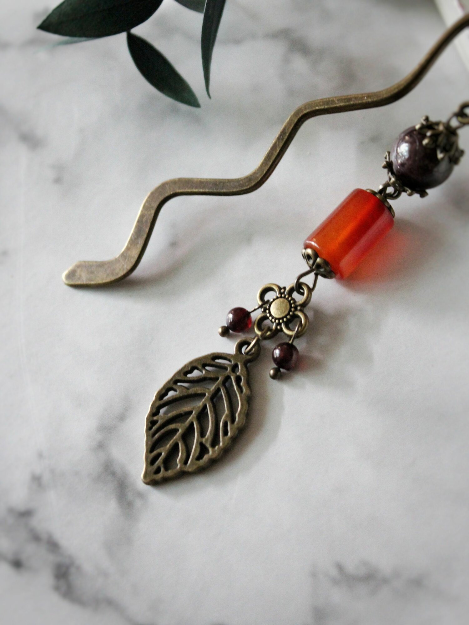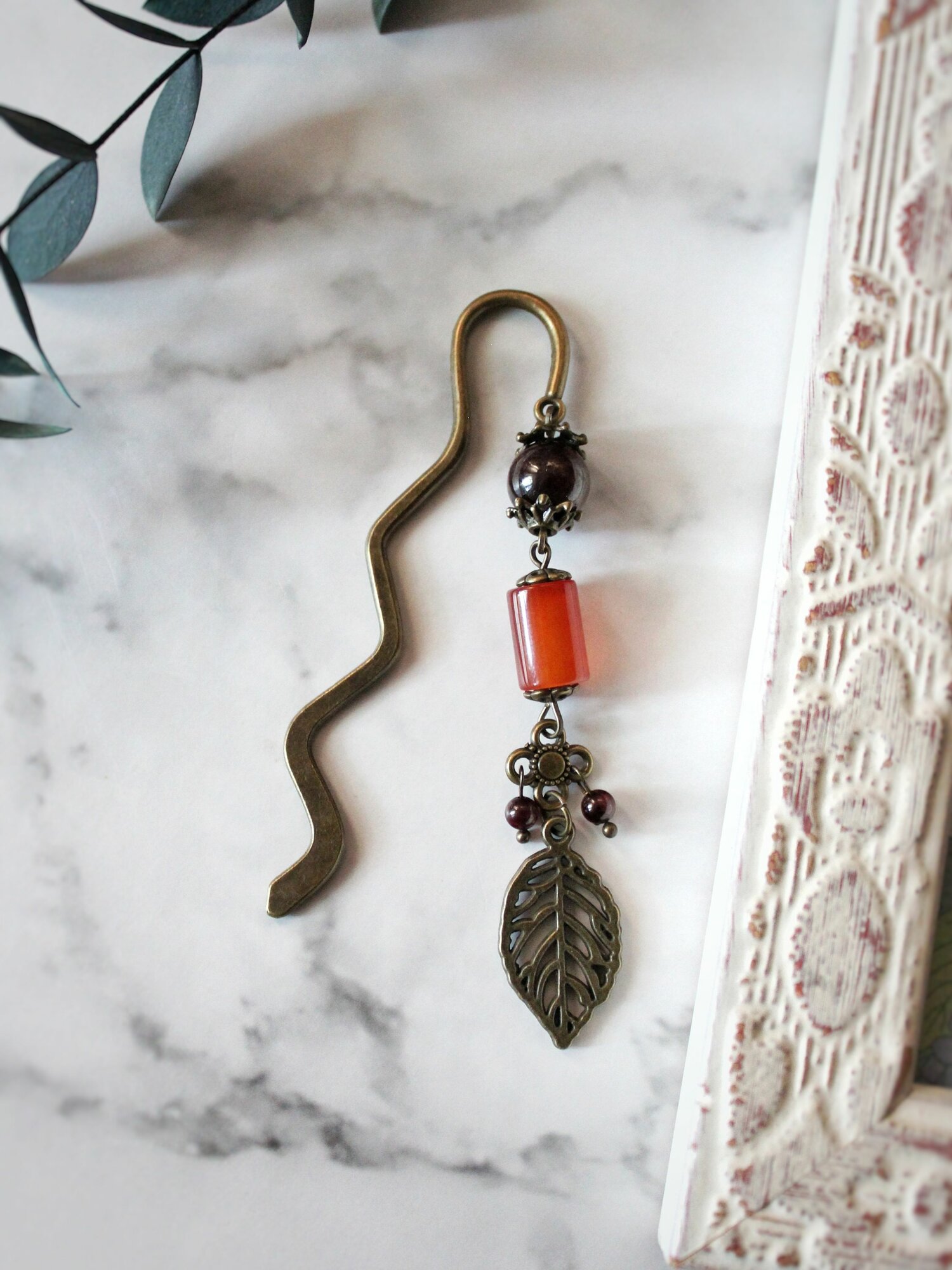 10 цен на Закладка с гранатом и сердоликом "Процветание" /Волна 8 см/ бронзовая для книги ежедневника дневника, готовый подарок коллеге подруге маме сестре