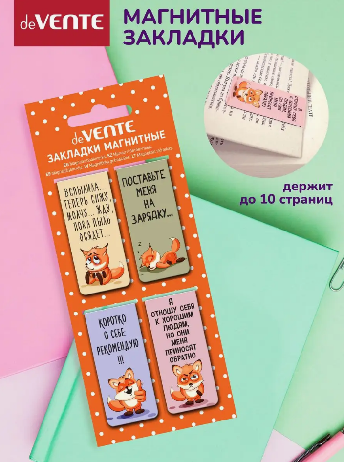 Набор закладок для книг deVENTE "Funny Fox" магнитных, 4 штуки информация:
