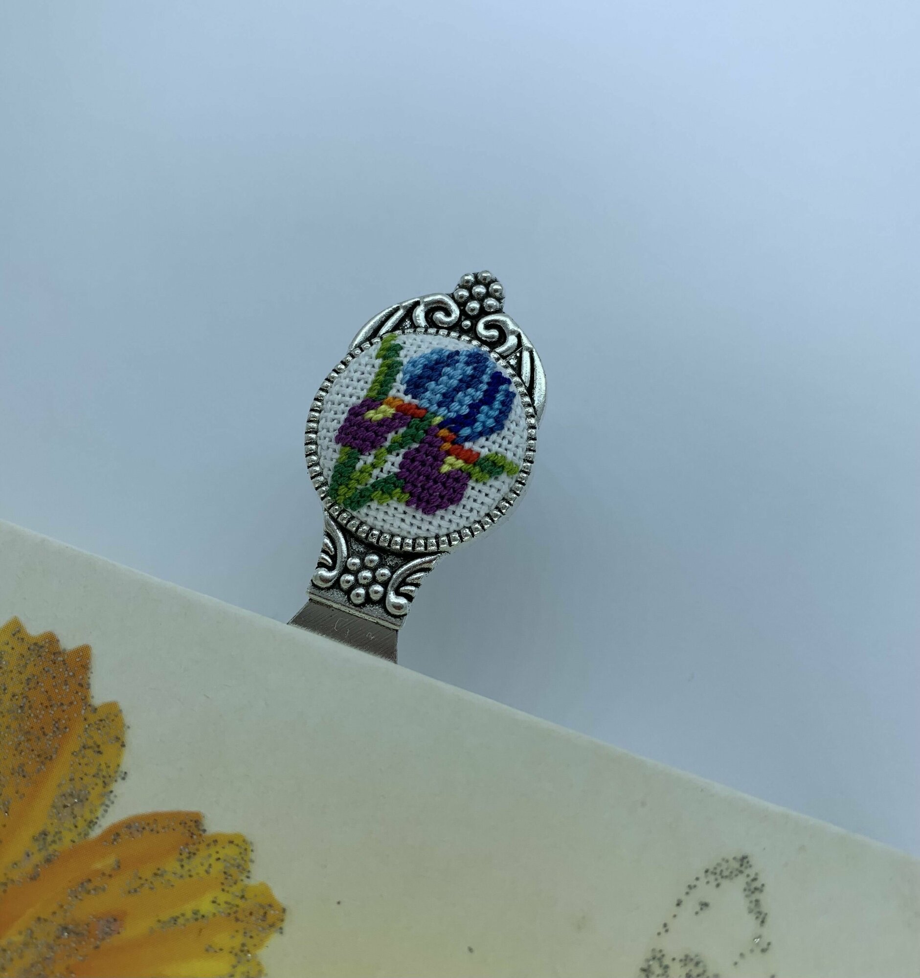 Закладка для книги ручной работы, микровышивка, ирис информация: