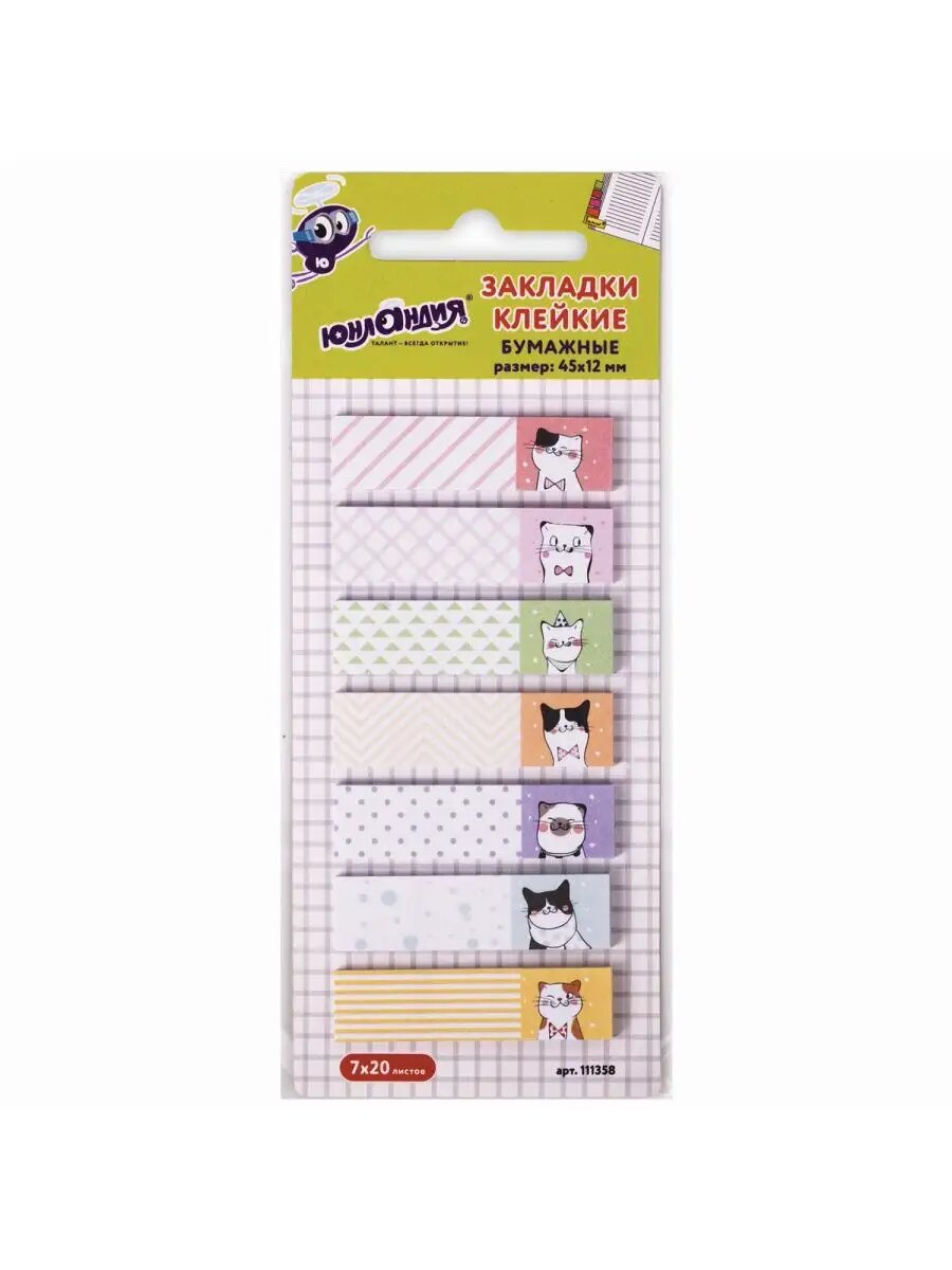 Отзывы на Закладки клейкие ЮНЛАНДИЯ «Котики», ширина 12 мм, длина 45 мм, 140 штук