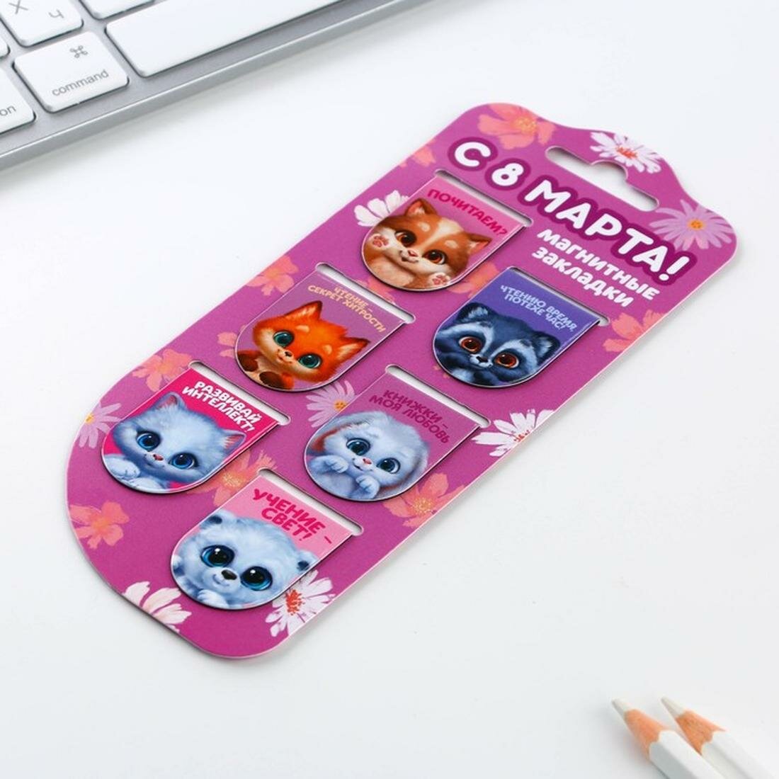 Набор магнитных закладок "Котики, как ни крути" (6шт 22х35мм), закладка для книг