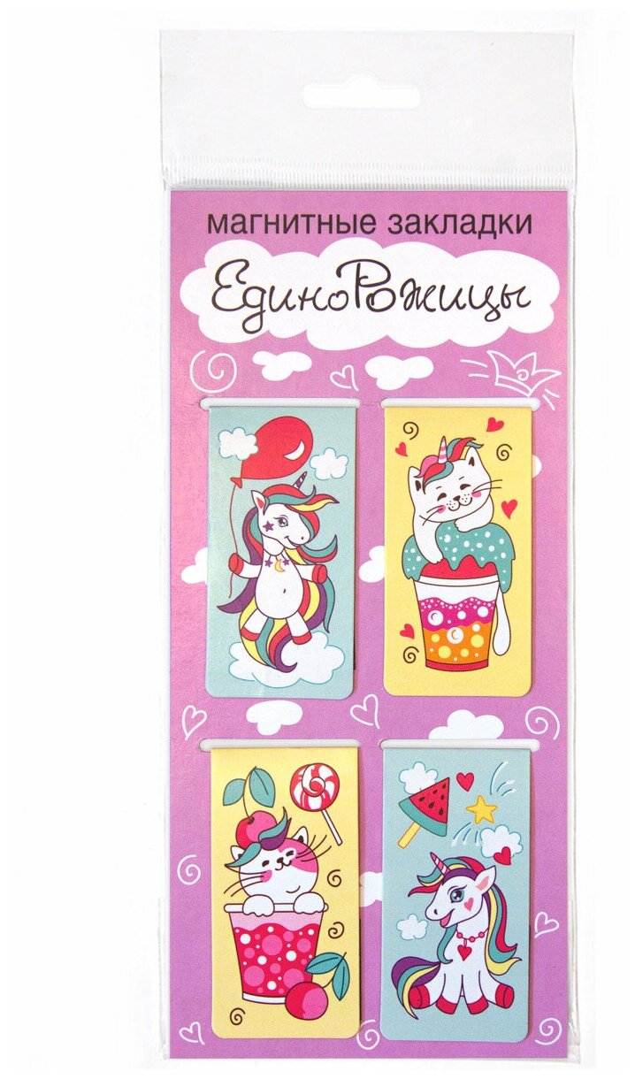 Набор магнитных закладок "ЕдиноРожицы" (35х70мм), закладка для книг информация: