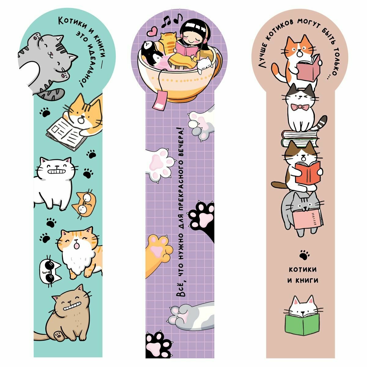 Набор магнитных закладок "Котики- обормотики" (35х70мм), закладка для книг