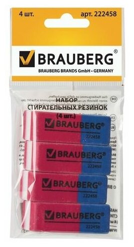 Набор ластиков Brauberg Assistant 80 (41х14х8мм) 4шт. (222458), 24 уп. информация: