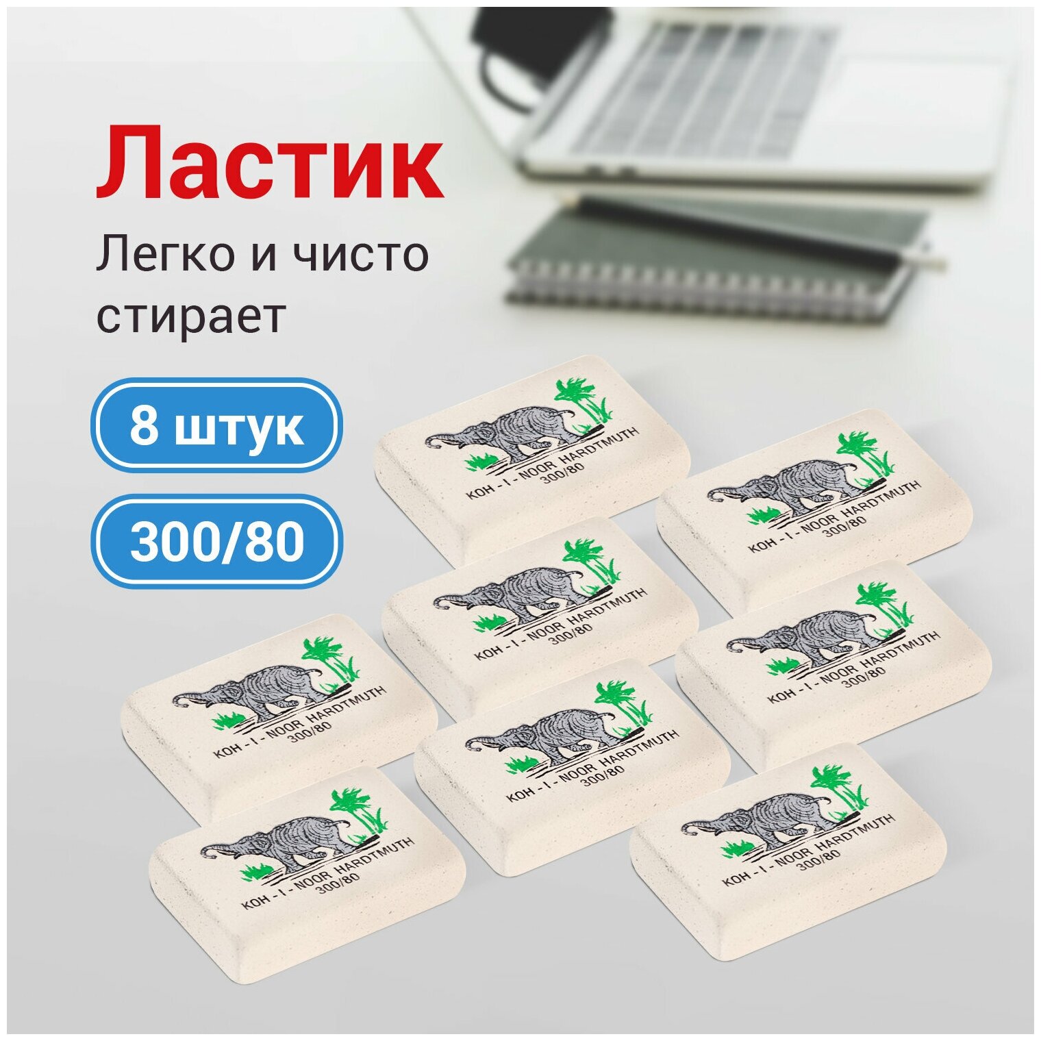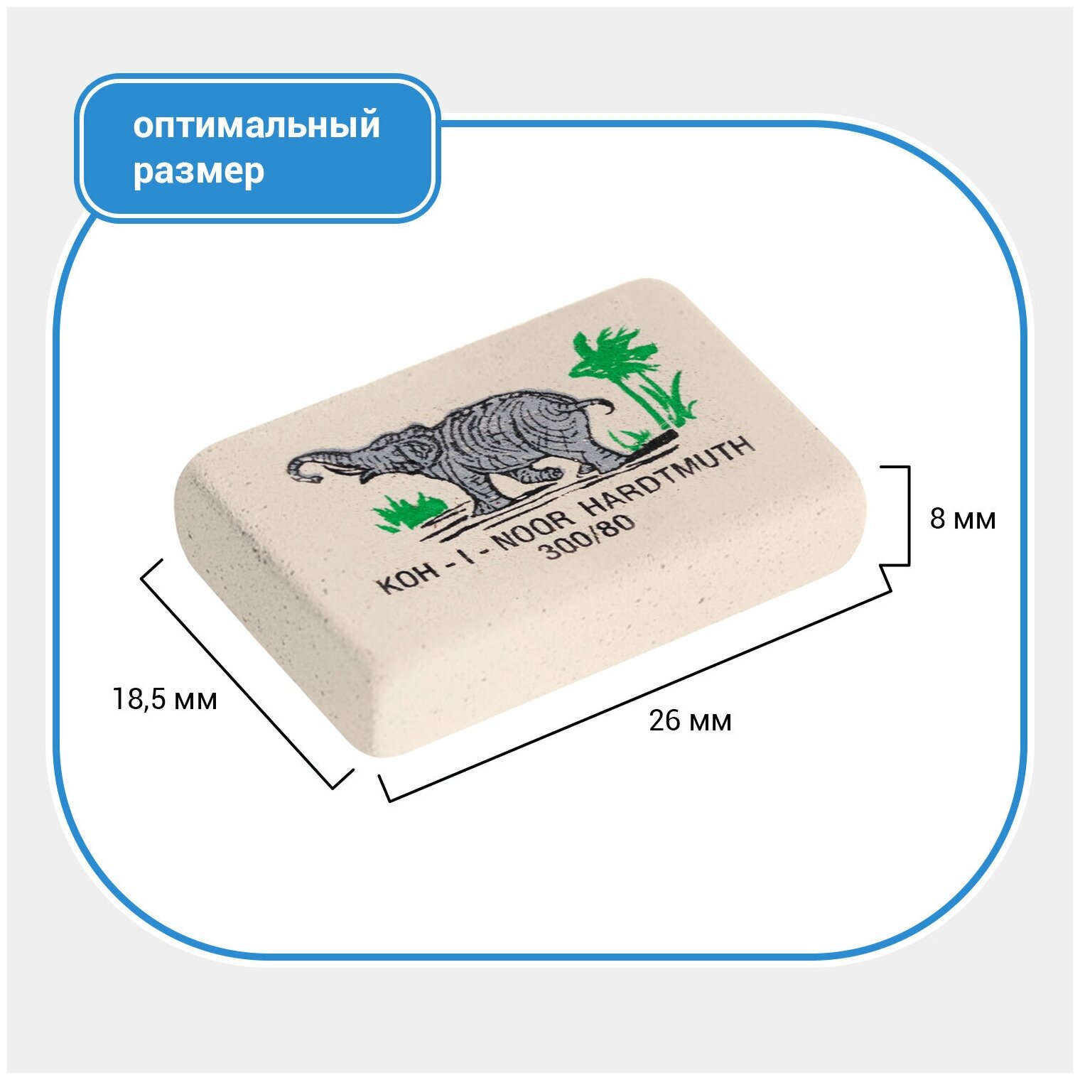Ластик / резинка стирательная / стерка канцелярская для карандаша Koh-i-noor Слон 300/80, Комплект 8 штук, 26х18,5х8мм, натуральный каучук, 880489 информация: