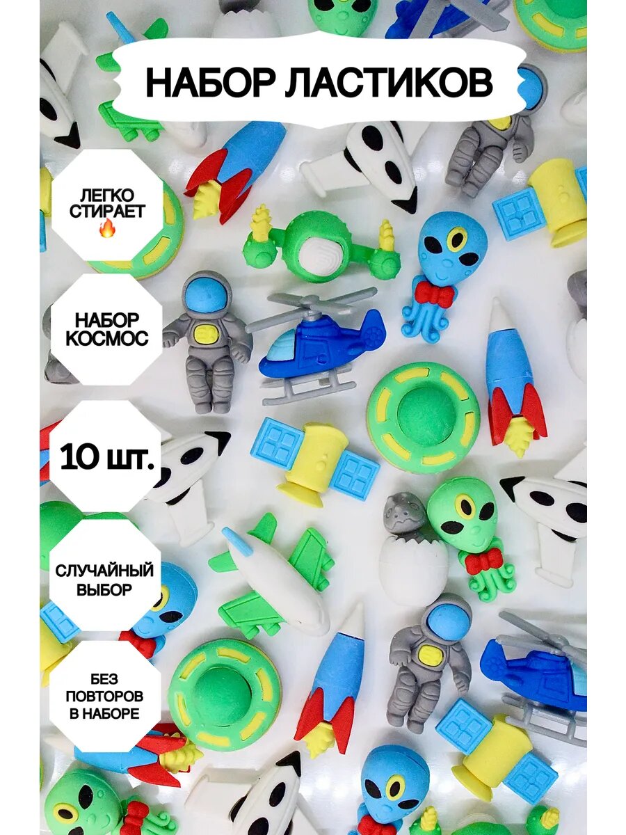 10 цен на Набор ластиков Market13Salnik "Космос", фигурные, резиновые, 10шт, случайный выбор
