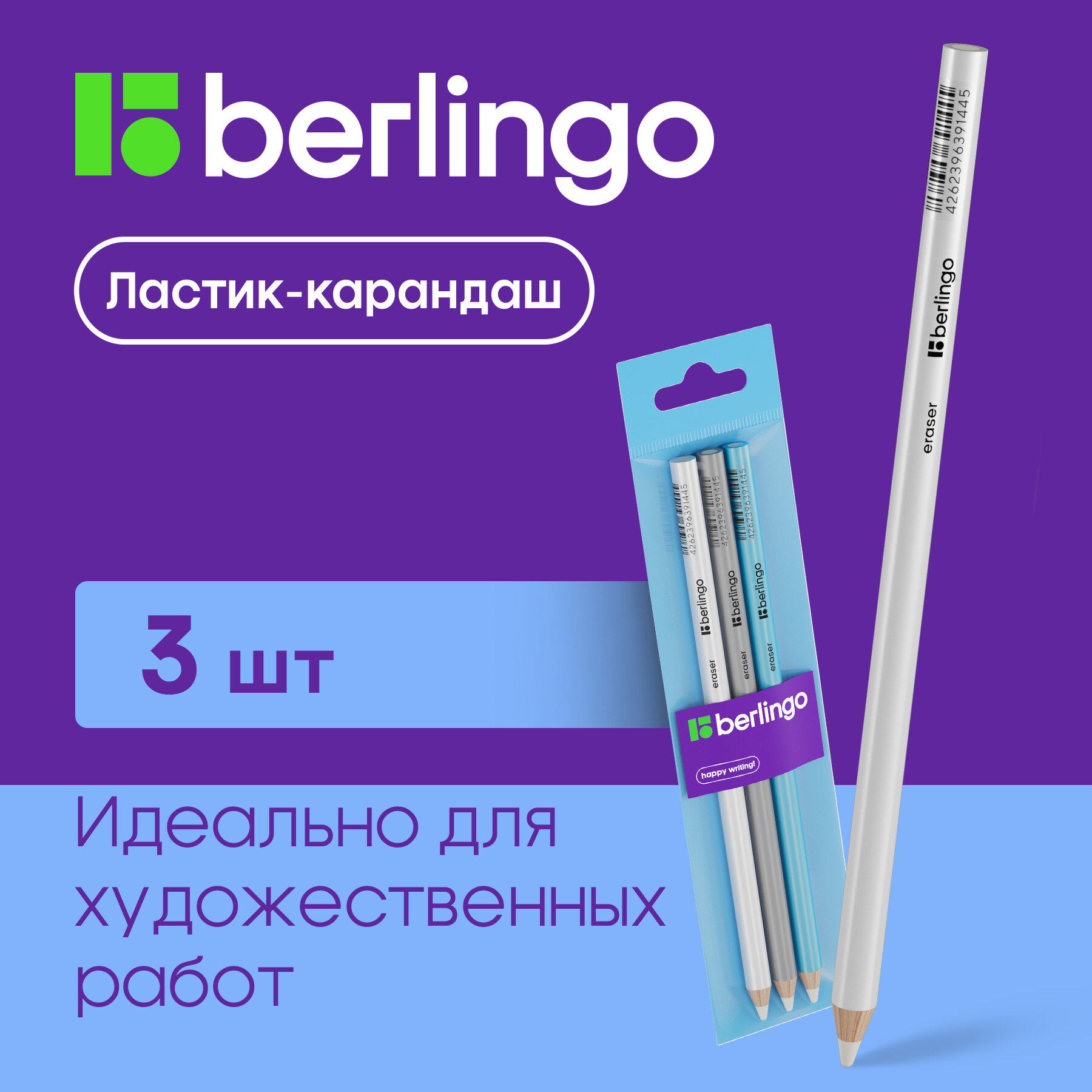 Отзывы на Ластик-карандаш Berlingo "Eraze 860", 3шт, односторонний, пакет с е/п