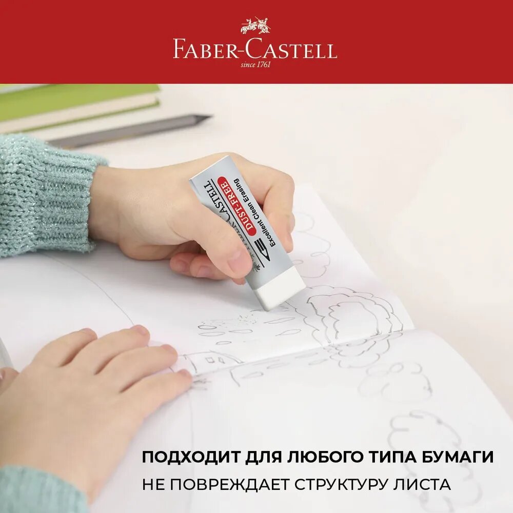 Отзывы на Ластик Faber-Castell "Dust Free", прямоугольный, картонный футляр, 62*21,5*11,5мм 2шт, пакет