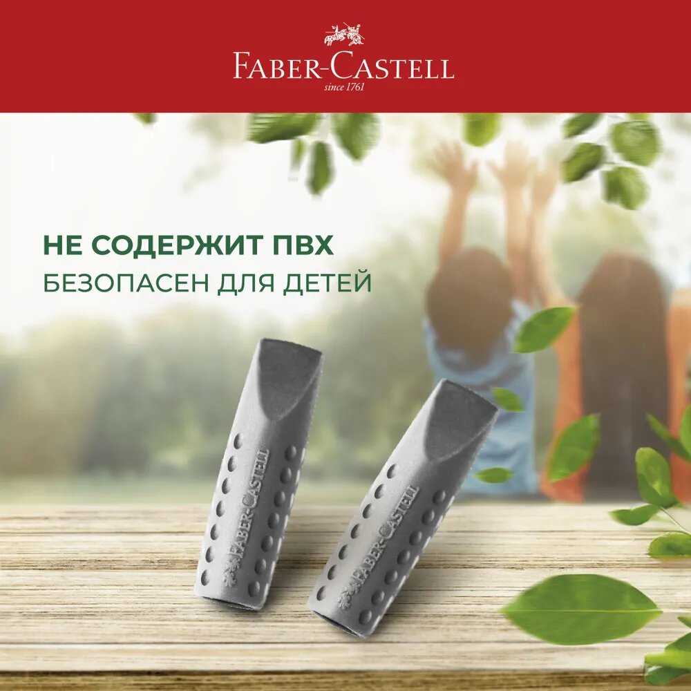 10 цен на Набор ластиков-колпачков Faber-Castell "Grip 2001" 2 шт, трехгранные, серые