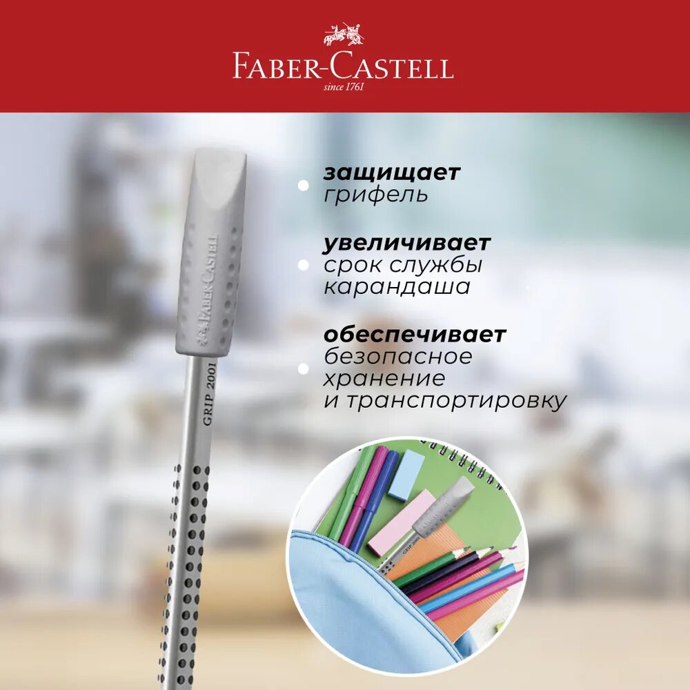 Набор ластиков-колпачков Faber-Castell "Grip 2001" 2 шт, трехгранные, серые информация: