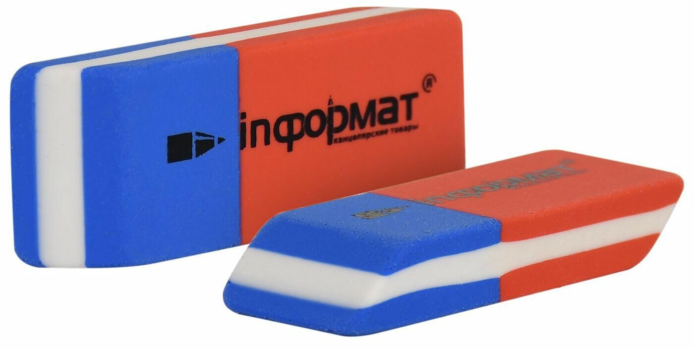 Отзывы на Ластик INFORMAT комбинированный каучук 53х19х9 мм скошенный красно-синий комбинированный