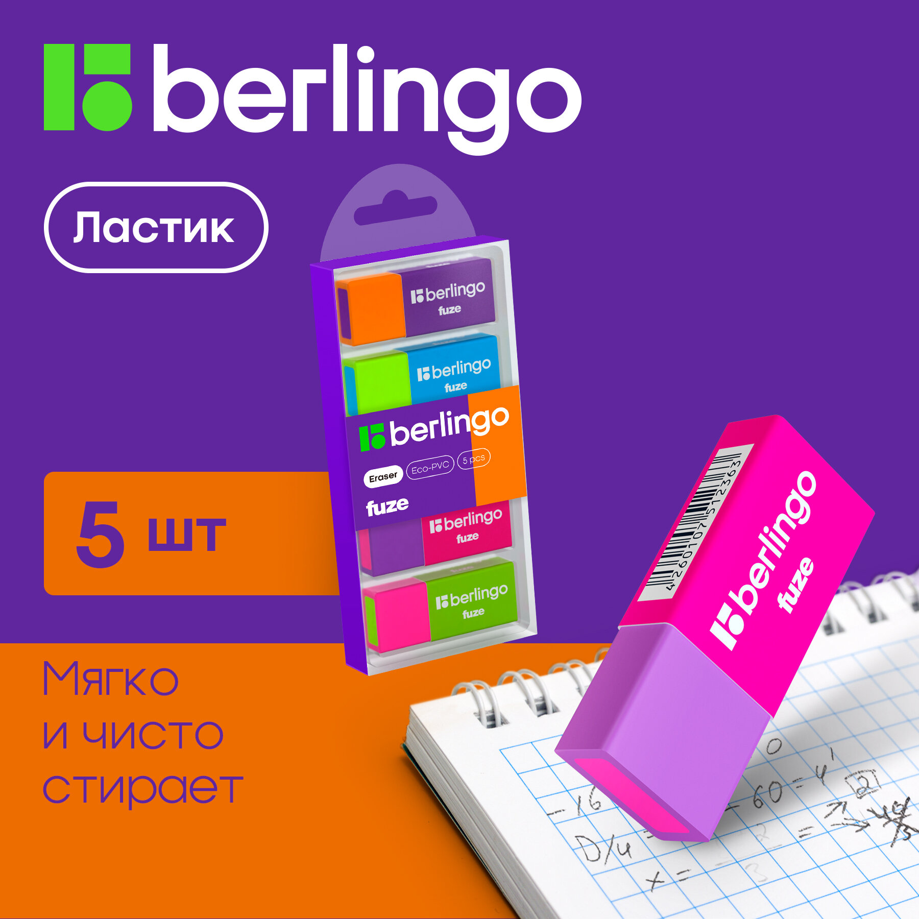 Отзывы на Ластик Berlingo Fuze, 5шт, прямоугольные, 50*20*11мм, пластиковая коробка