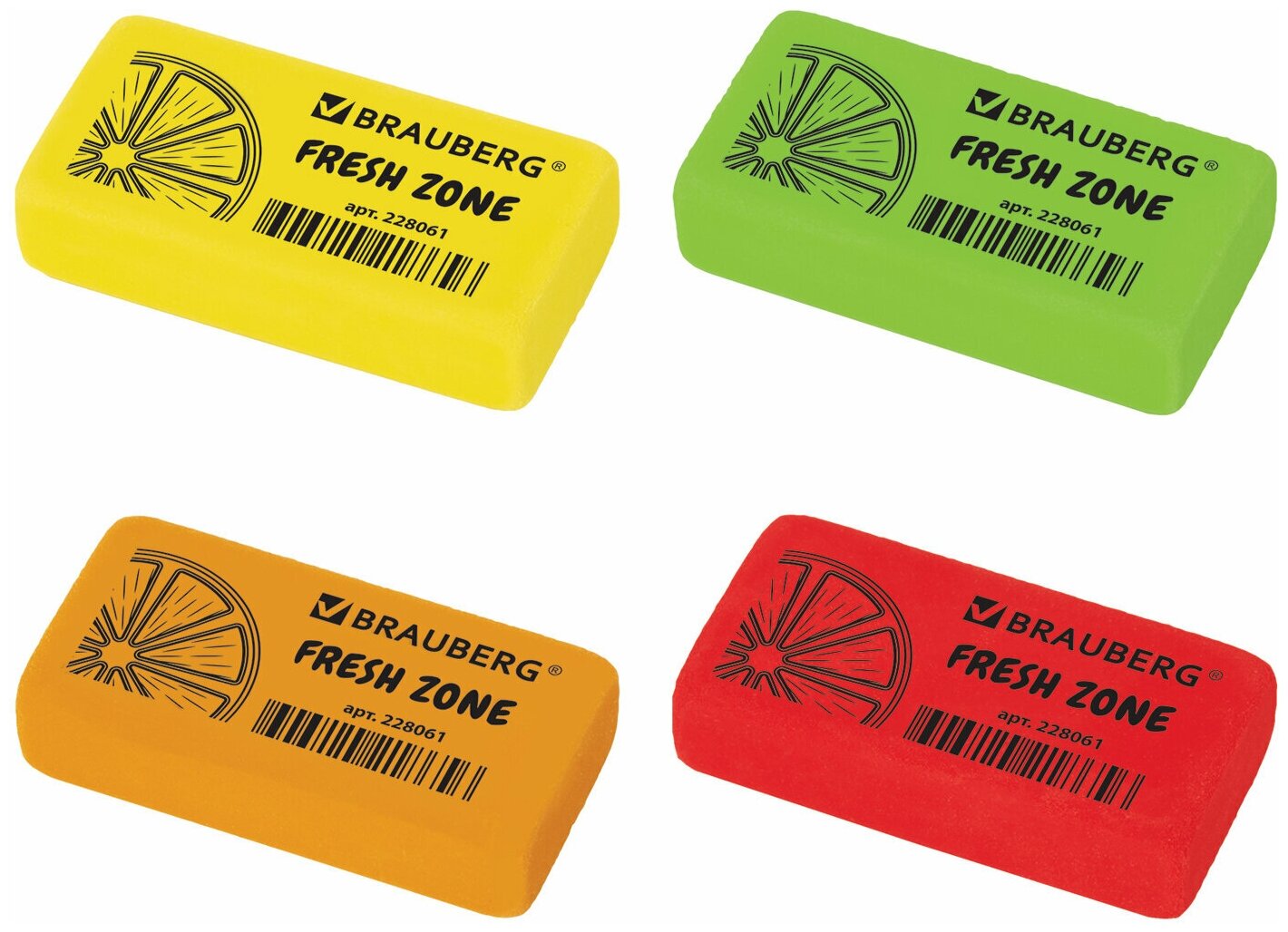 Ластик BRAUBERG "Fresh Zone", 40х20х10 мм, цвет ассорти, прямоугольный, 228061 информация: