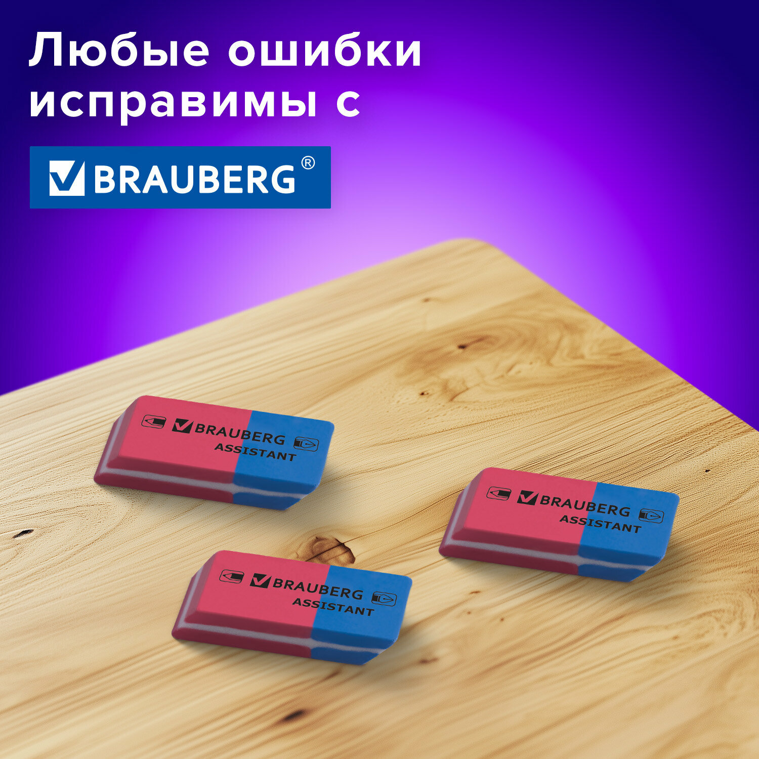 Набор ластиков BRAUBERG "Assistant 80", 4 шт, 41х14х8 мм, красно-синие, прямоугольные, скошенные края, 222458 информация:
