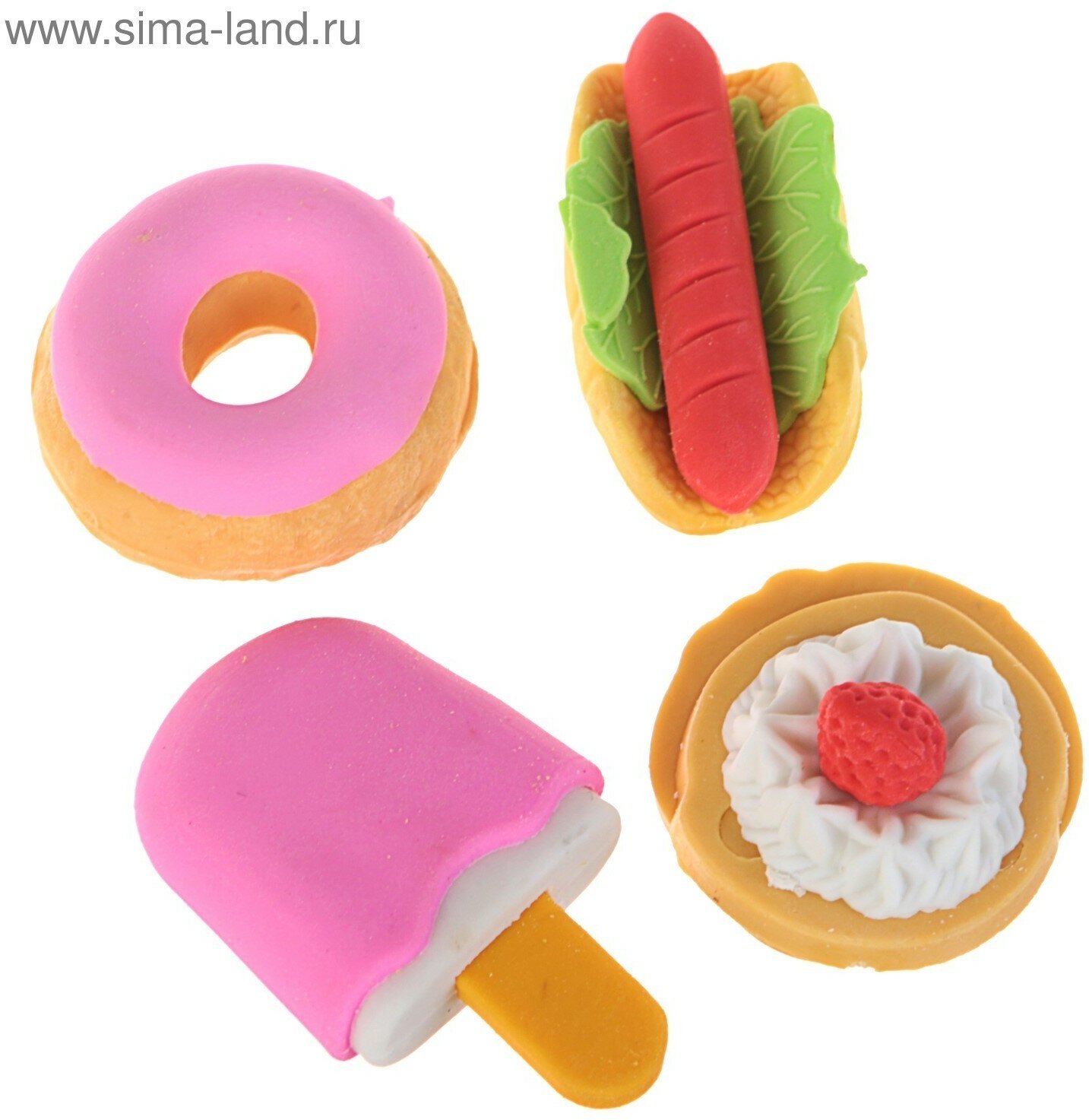 10 цен на Набор фигурных ластиков "Десерты", 4 штуки, в пакете на зип-молнии, микс (штрихкод на штуке)