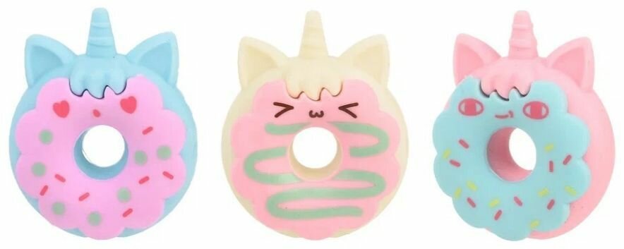 Ластик-насадка на карандаш "ПОНЧИК mini" в форме пончика-единорожки в наборе 3 (шт.) информация:
