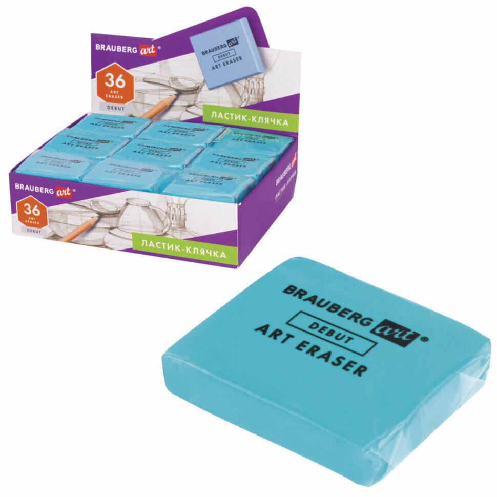 Ластик-клячка художественный BRAUBERG ART "DEBUT", 40х36х10 мм, мягкий, голубой, 229583, 36 шт, 229583 информация: