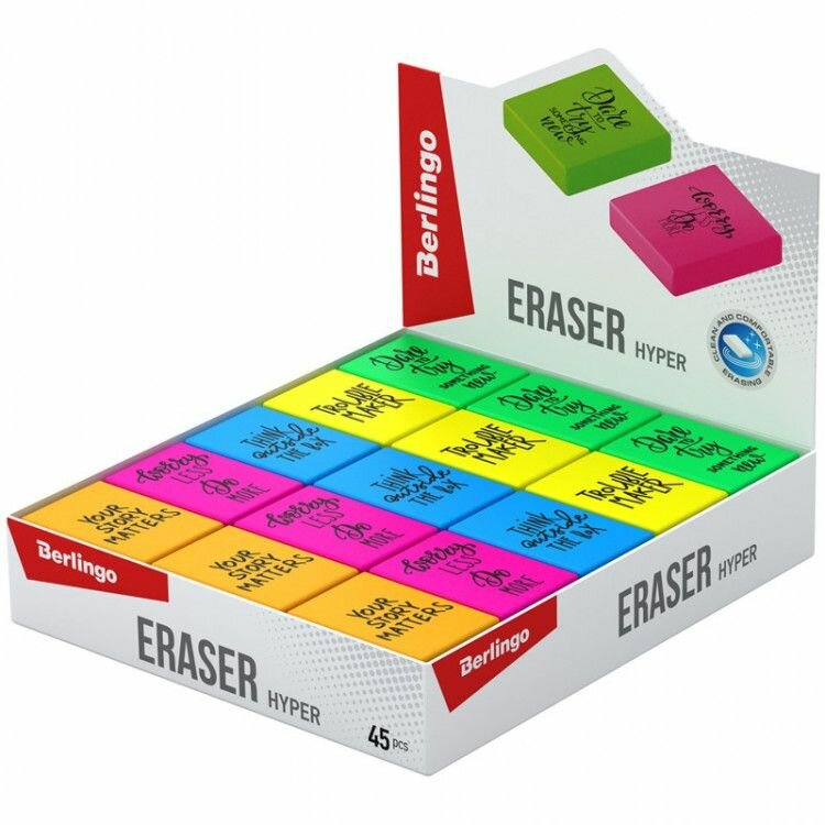 Отзывы на Ластик канцелярский для карандашей Berlingo Hyper в ассортименте 10 шт