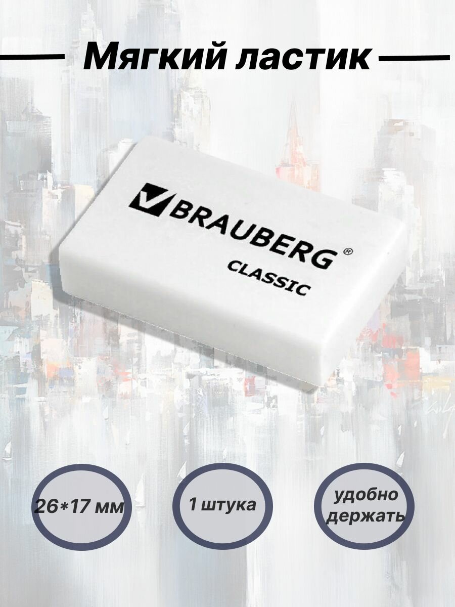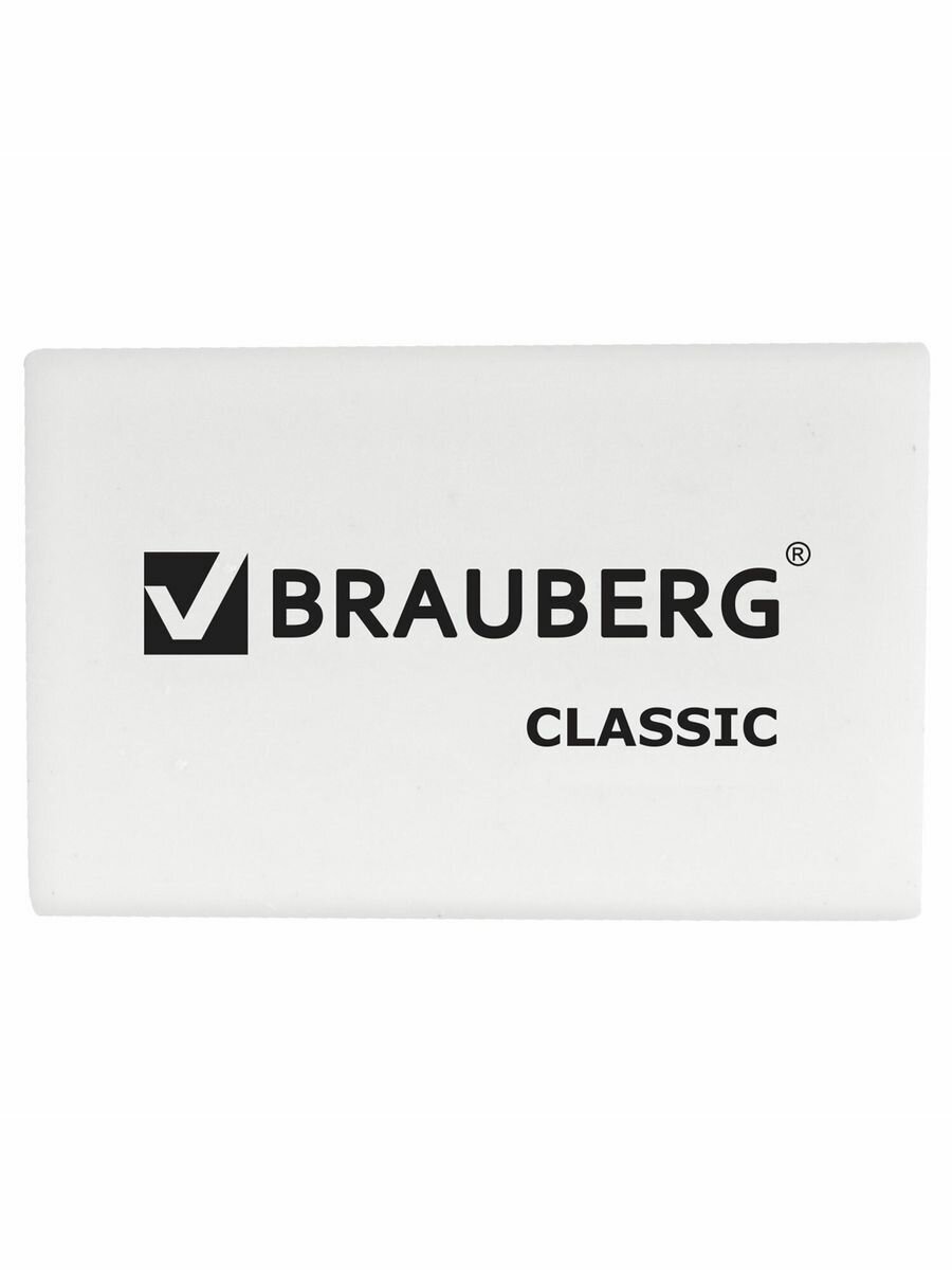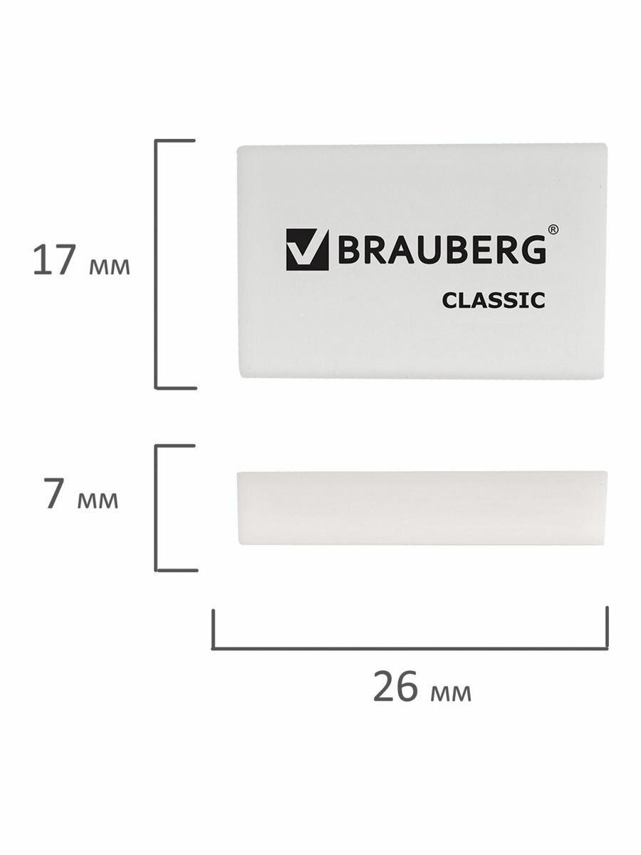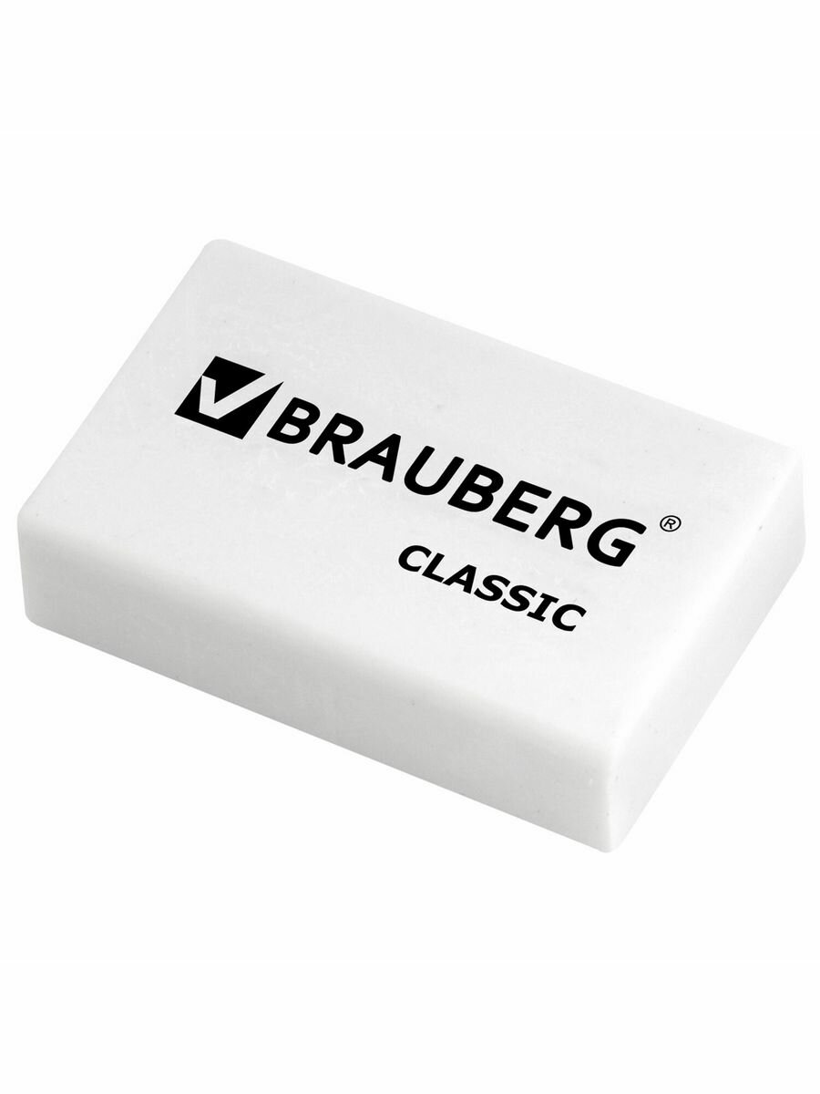 Ластик школьный Brauberg Classic, 26 мм x 17 мм x 7 мм, белый, 1 штука информация: