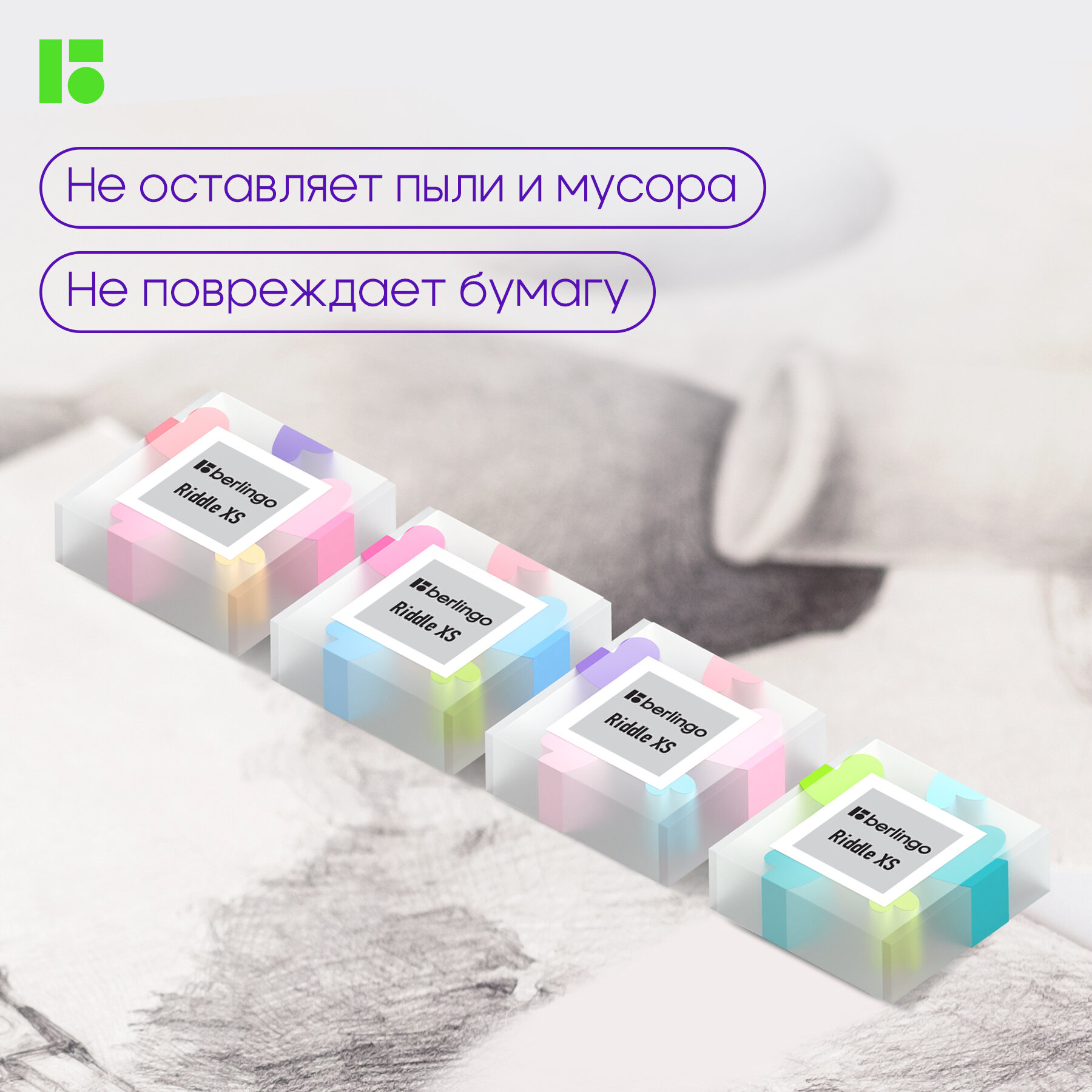 Отзывы на Ластик Berlingo "Riddle XS", 4шт, прямоугольный, 34*34*14мм, блистер