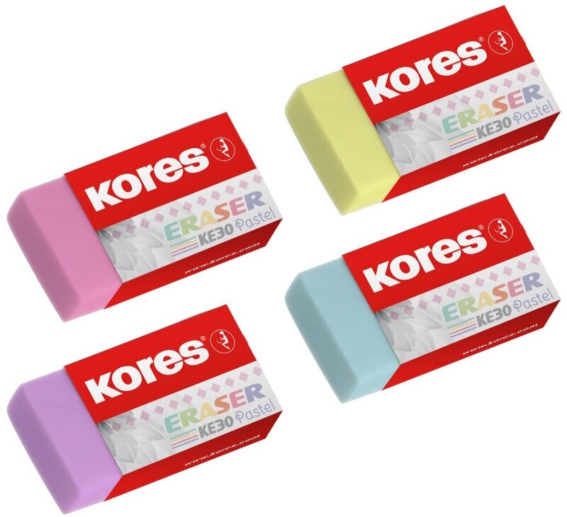 Ластик Kores 40x21x10мм 3 шт/уп, пастельный KE-30, блистер 40315 информация: