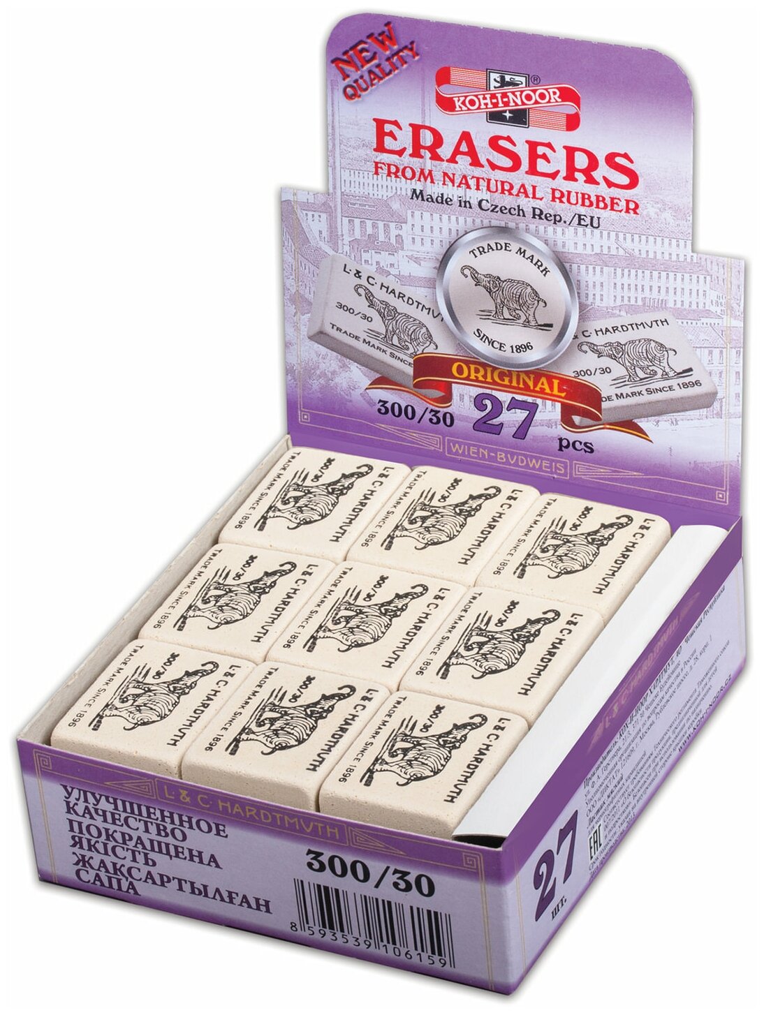 10 цен на Ластик KOH-I-NOOR "Слон" 300/30, 35,5х28,5х10 мм, белый, прямоугольный, натуральный каучук, 0300030029KDRU