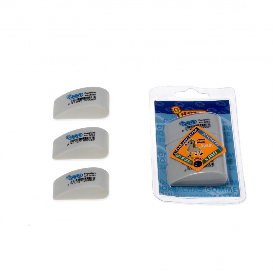 Ластики JOVI "Ergoplast" белые, набор 3 штуки, форма капли, натуральный каучук информация: