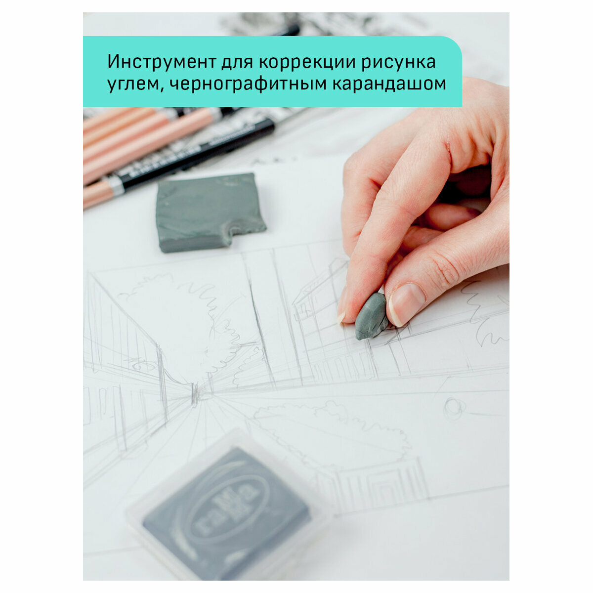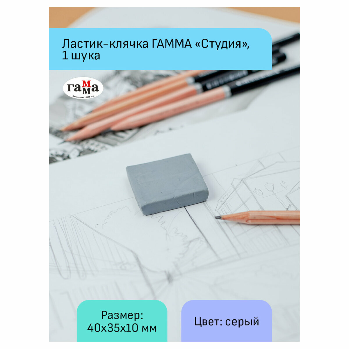 Ластик-клячка Гамма "Студия", 40*35*10мм, серый, пластик. контейнер, 4 штуки информация:
