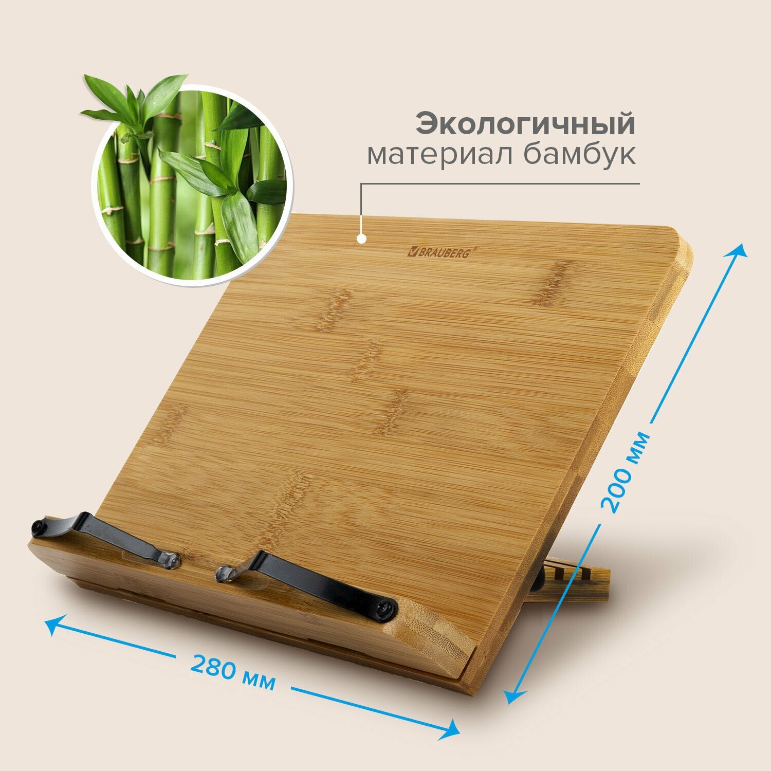 Подставка для книг и планшетов бамбуковая BRAUBERG, 28х20 см, регулируемый наклон, 237895 информация:
