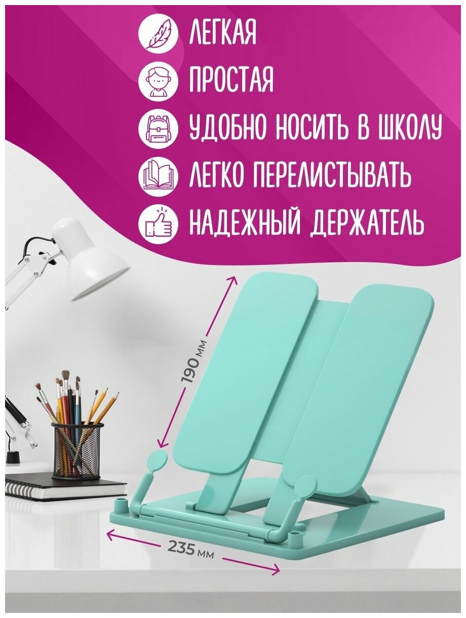 10 цен на Подставка для книг и учебников школьная AXLER, пластиковый держатель мятный