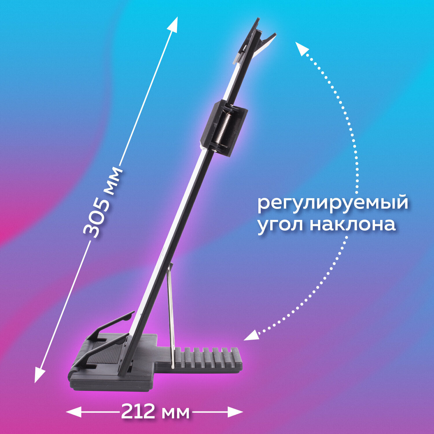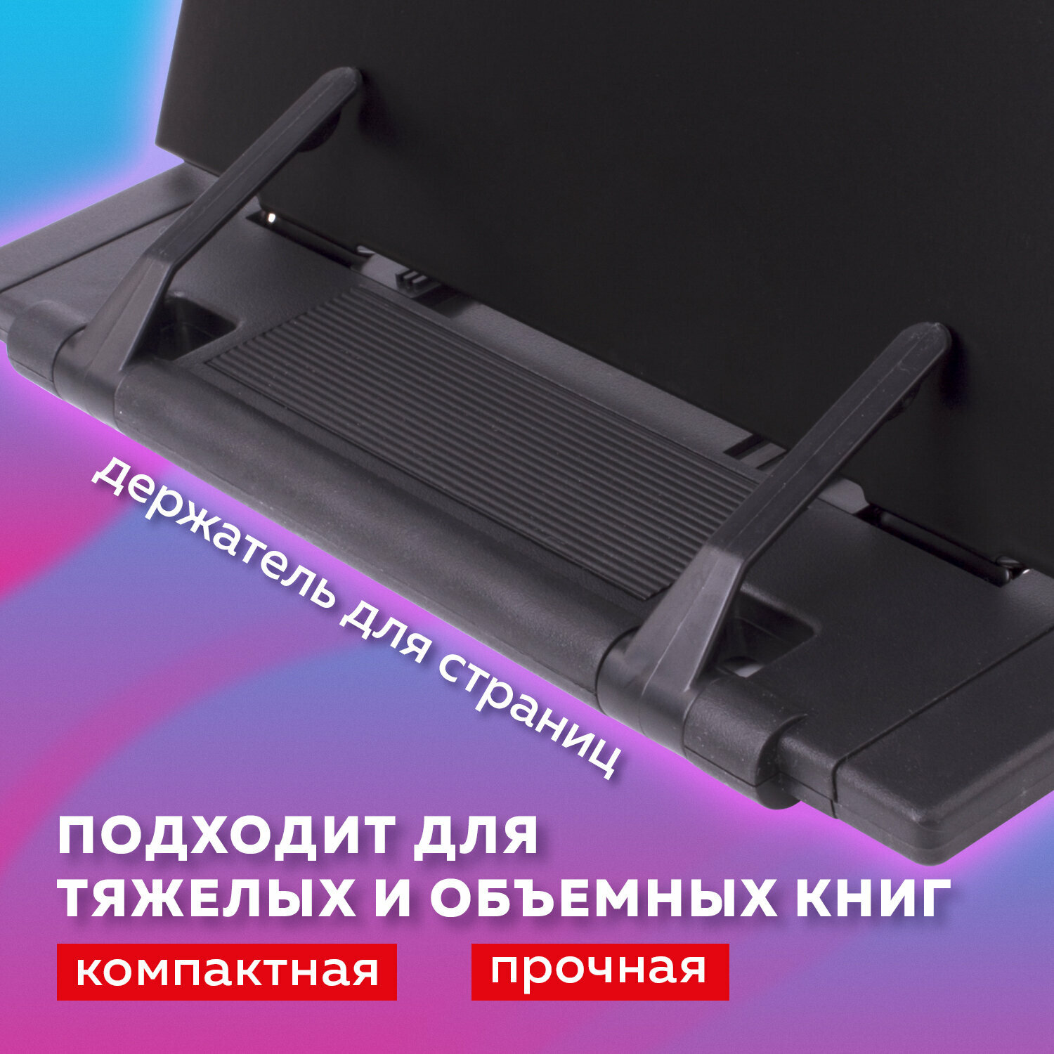 Подставка для книг, учебников, журналов настольная школьная большая Brauberg, регулируемый угол наклона, металл/пластик, черная, 237447 информация: