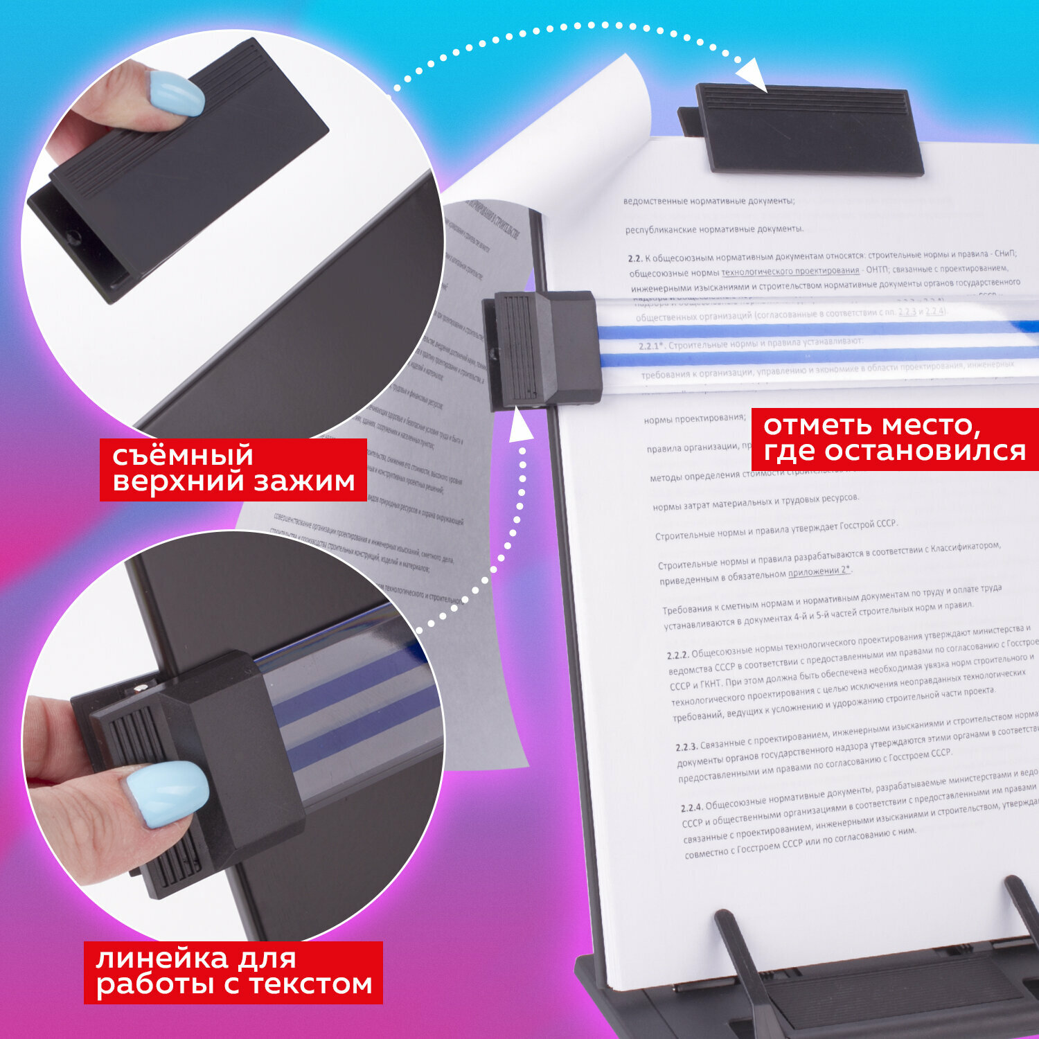 Отзывы на Подставка для книг, учебников, журналов настольная школьная большая Brauberg, регулируемый угол наклона, металл/пластик, черная, 237447