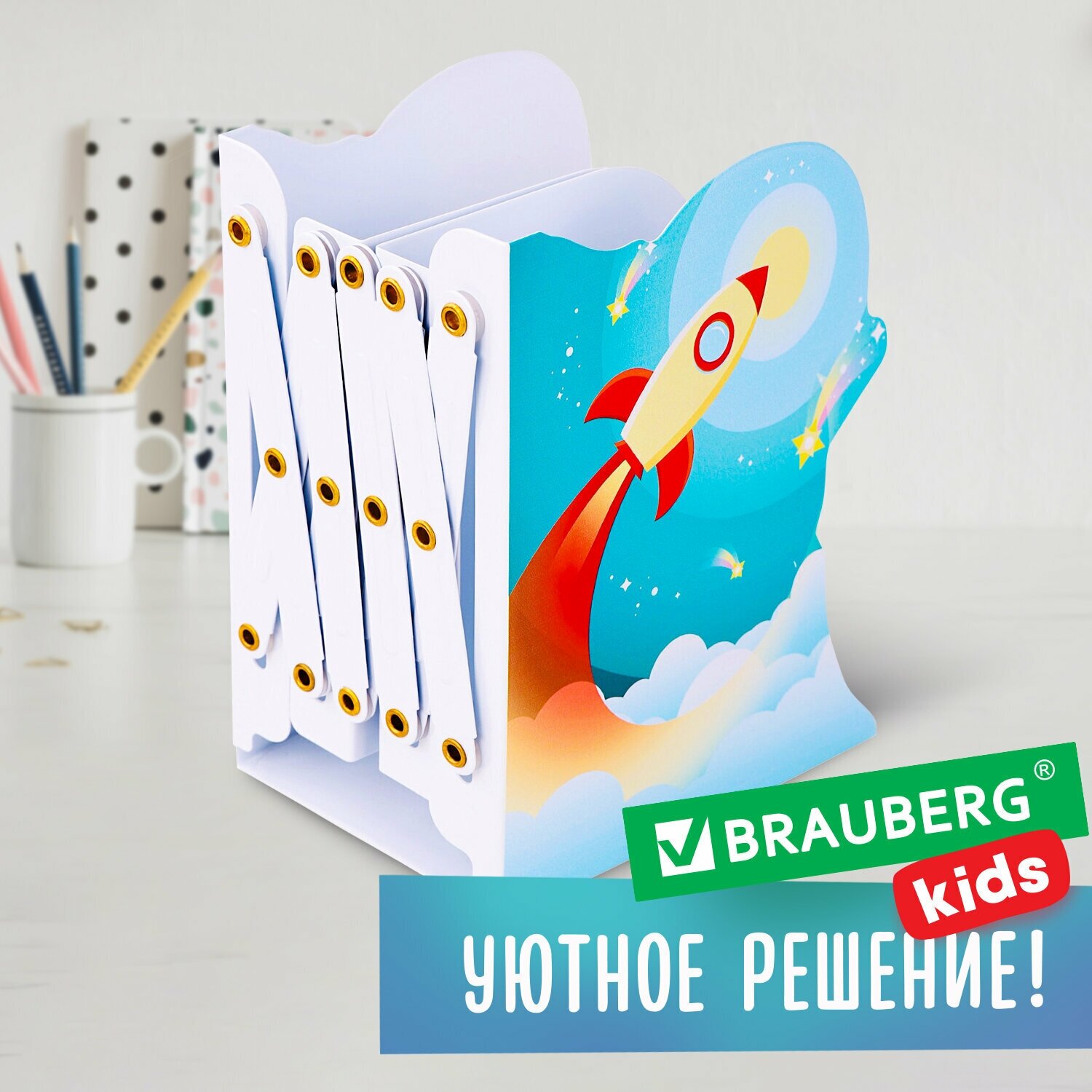 Подставка-держатель для книг, учебников, журналов настольная школьная фигурная Brauberg Kids Cosmo раздвижная, металлическая, 238068 информация: