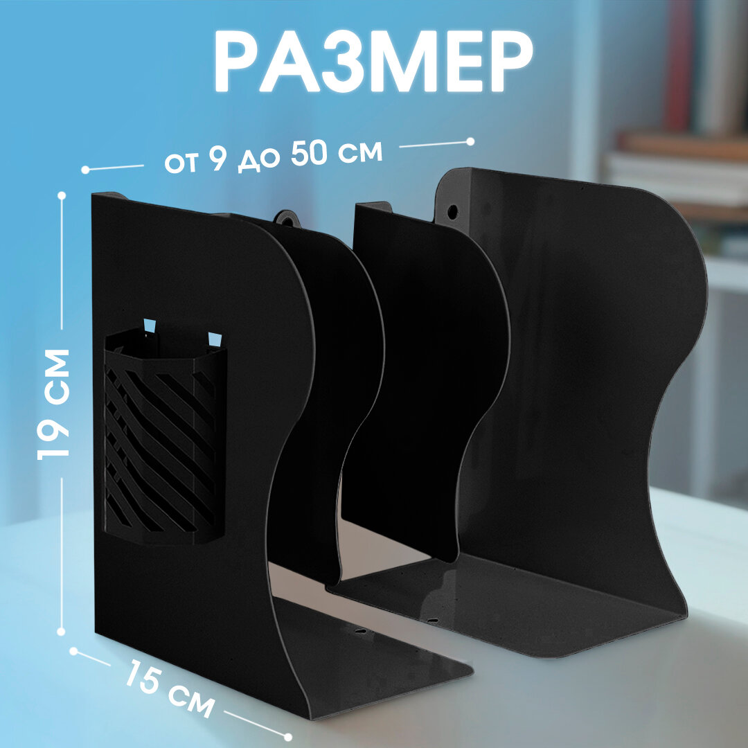 Ограничитель для книг и учебников подставка комплект 2 шт черный 705-008B