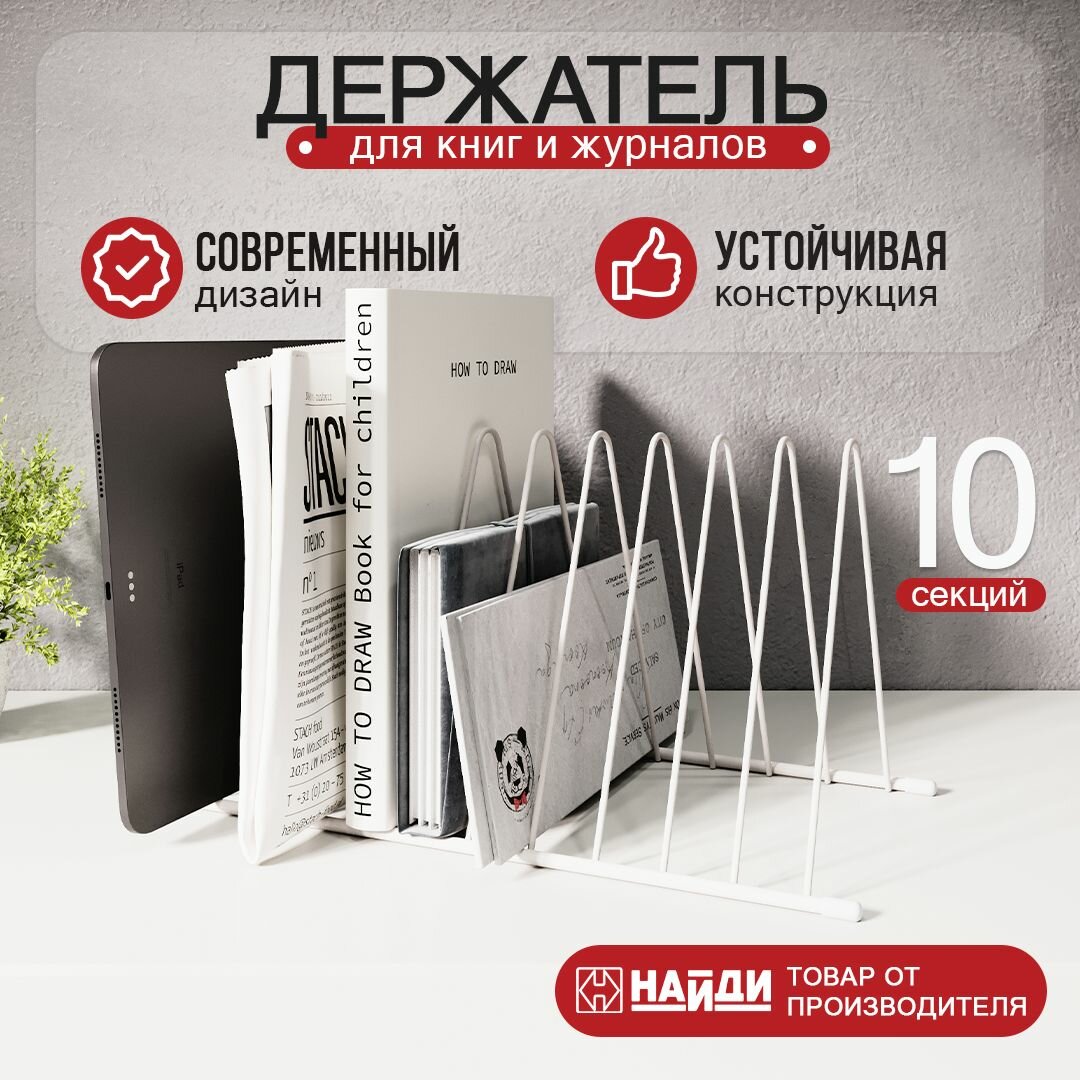 10 цен на Подставка для книг найди, белый муар, металлическая, 34x16x17.7 см