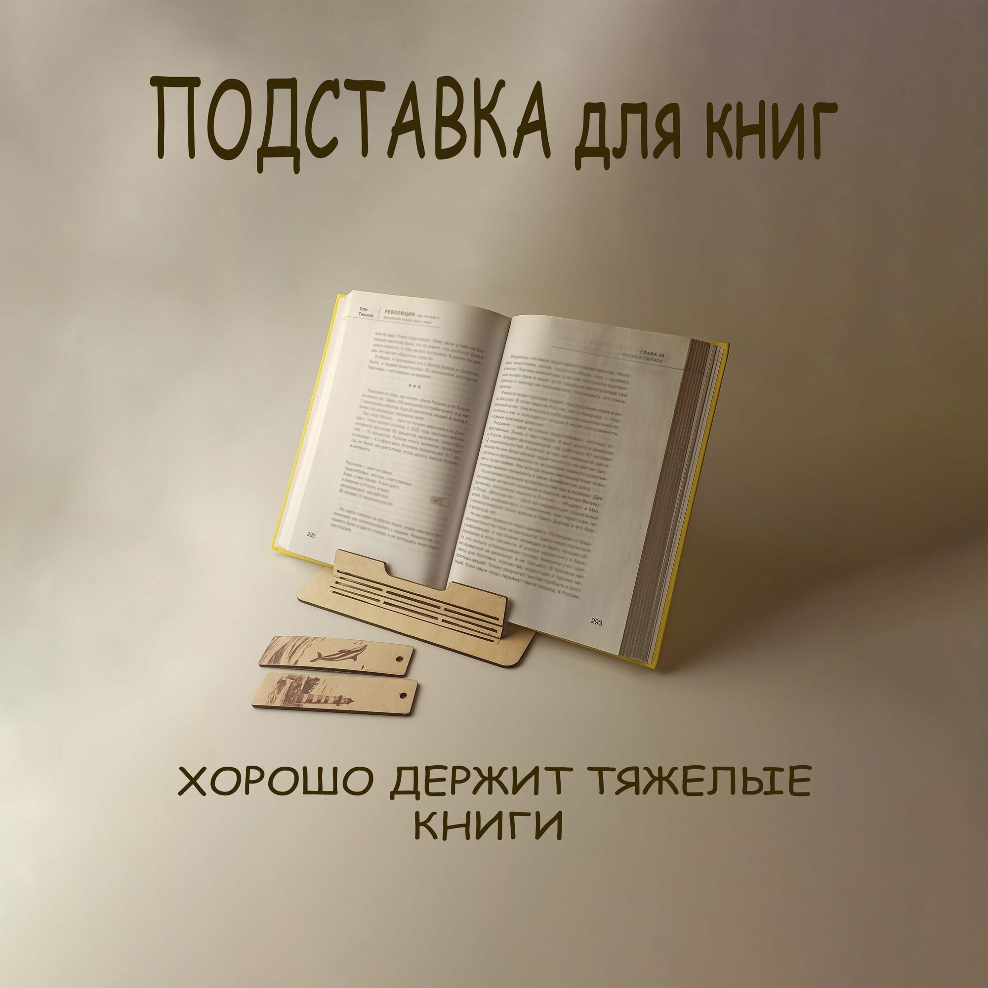 10 цен на Подставка для книг с двумя закладками, дерево, складная конструкция, бежевый, 21 см x 21 см