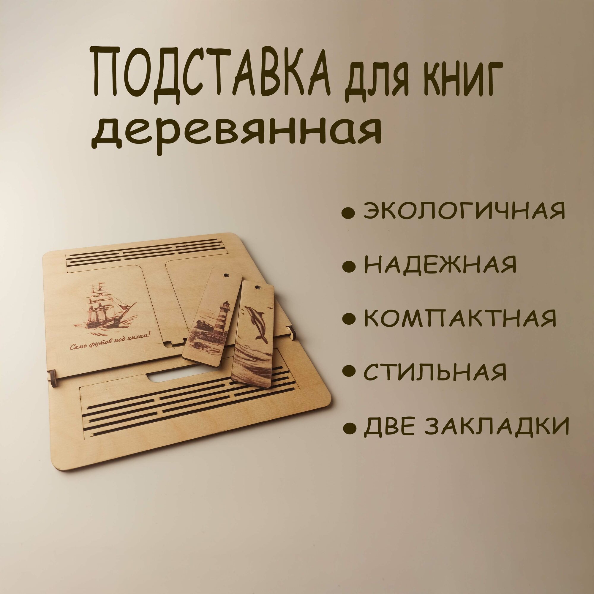 Подставка для книг с двумя закладками, дерево, складная конструкция, бежевый, 21 см x 21 см информация: