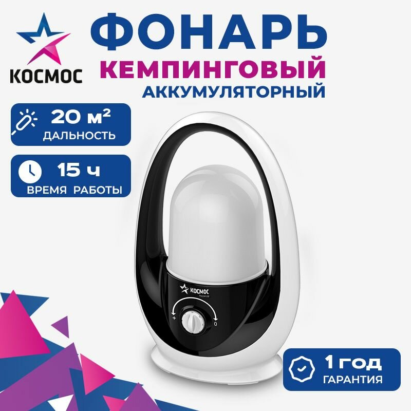 Фонарь кемпинговый аккумуляторный Космос 6012W, регулировка яркости Белый/черный