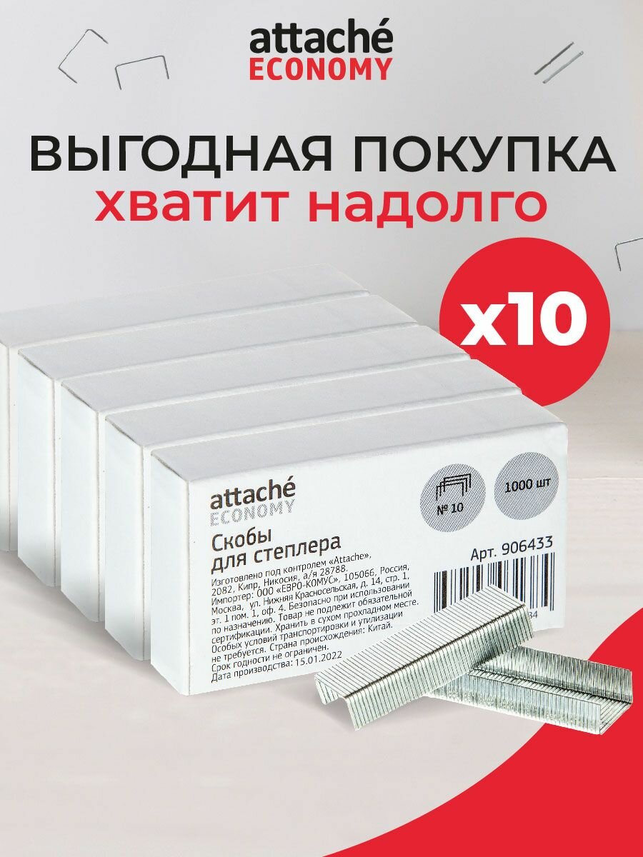 Скобы для степлера канцелярского Attache Economy, №10, 1000 штук, 10 упаковок информация: