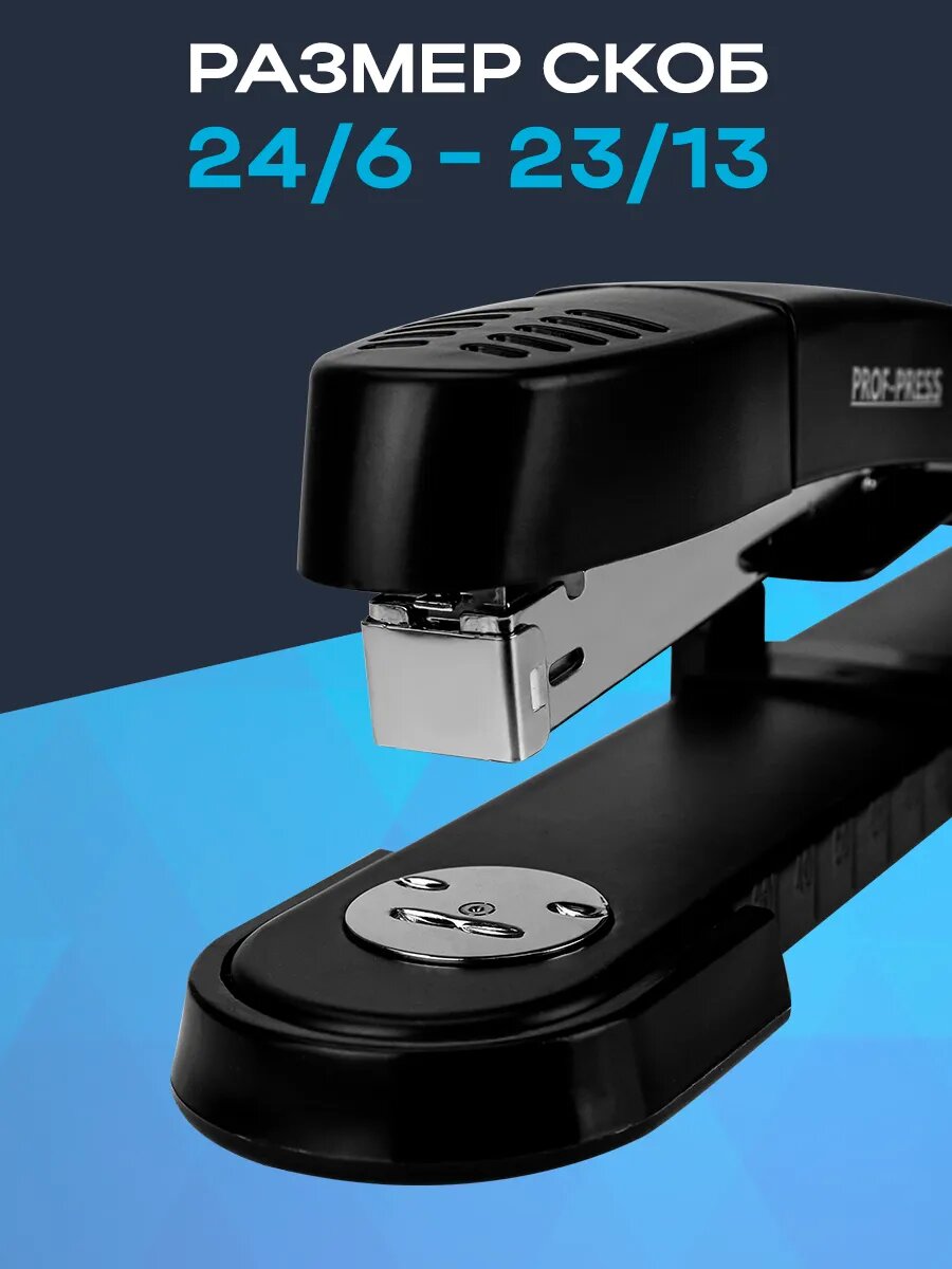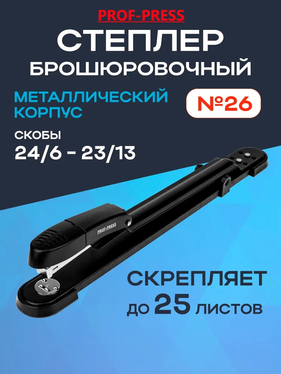 10 цен на Степлер-брошюровщик Prof-Press, металл, №24-6, №26-6, 25 пробиваемых листов, чёрный