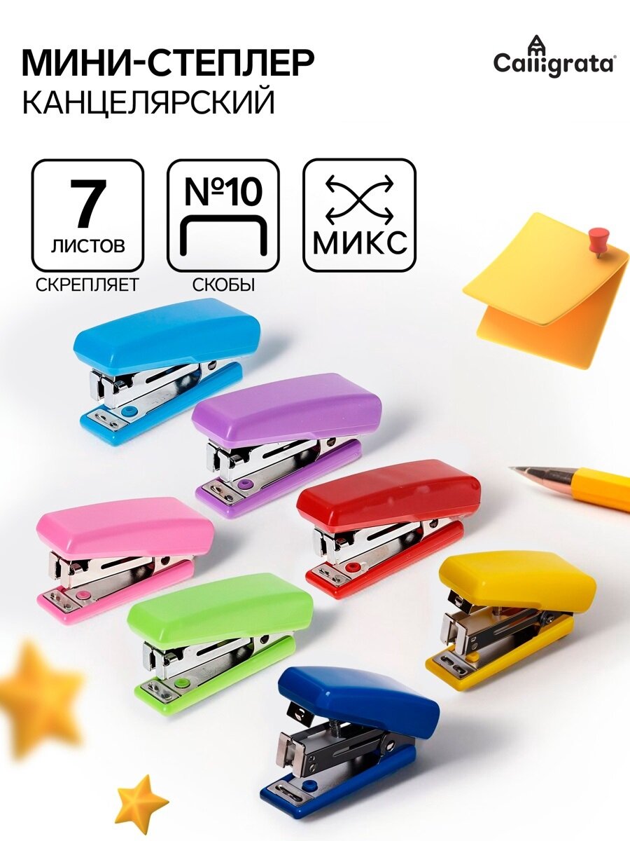 Мини-степлер канцелярский №10, Calligrata, до 7 листов, микс информация: