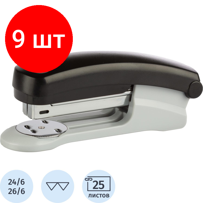10 цен на Комплект 9 штук, Степлер Attache Effect (№24/6-26/6) до 25л, пластик, черный