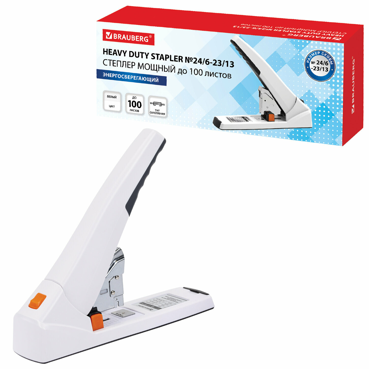 Степлер мощный канцелярский для бумаги энергосберегающий, до 100 листов без усилий, скобы №24/6-23/13, Brauberg One Moment, 272738 информация:
