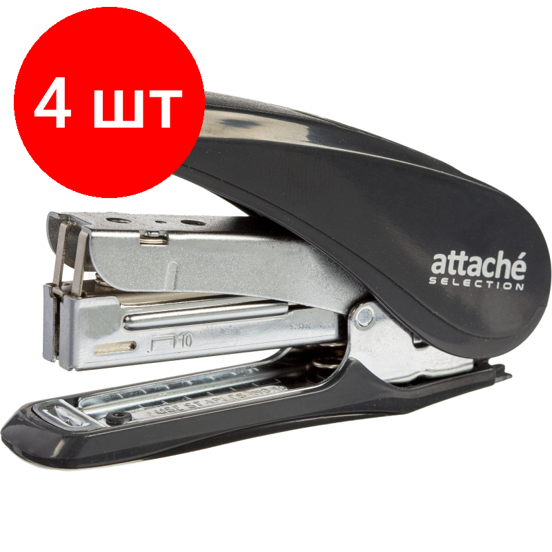 10 цен на Комплект 4 штук, Степлер Attache Selection MSGY1020 (№10) до 20лис, энергосбер, металл, серый