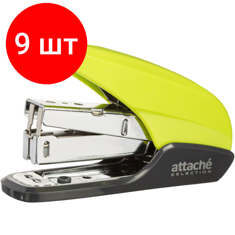 Комплект 9 штук, Степлер Attache Selechion (№10) до 16лис, энергосберегающий, антистеп, салатов информация: